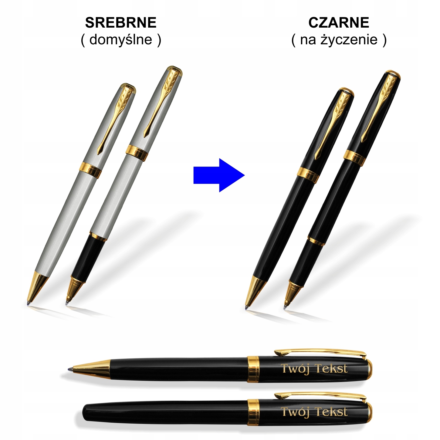 - ручка та ручка - лазерне гравірування вашого імені або іншого короткого тексту. Місце гравіювання - верхня частина пишучих елементів (шапочка) з одного боку.