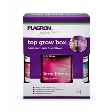 Top Grow Box 100% TERRA — ідеальний набір, якщо ви хочете залишатися гнучкими. Завдяки безпосередньо засвоюваним основним поживним речовинам Terra Grow і Terra Bloom ви завжди можете швидко реагувати на потреби рослин. Усі продукти 100% TERRA забезпечують велику гнучкість, дозволяючи вирощувати зернові культури за вашим бажанням. Вмісту одного набору Top Grow Box вистачає на один квадратний метр посадки.