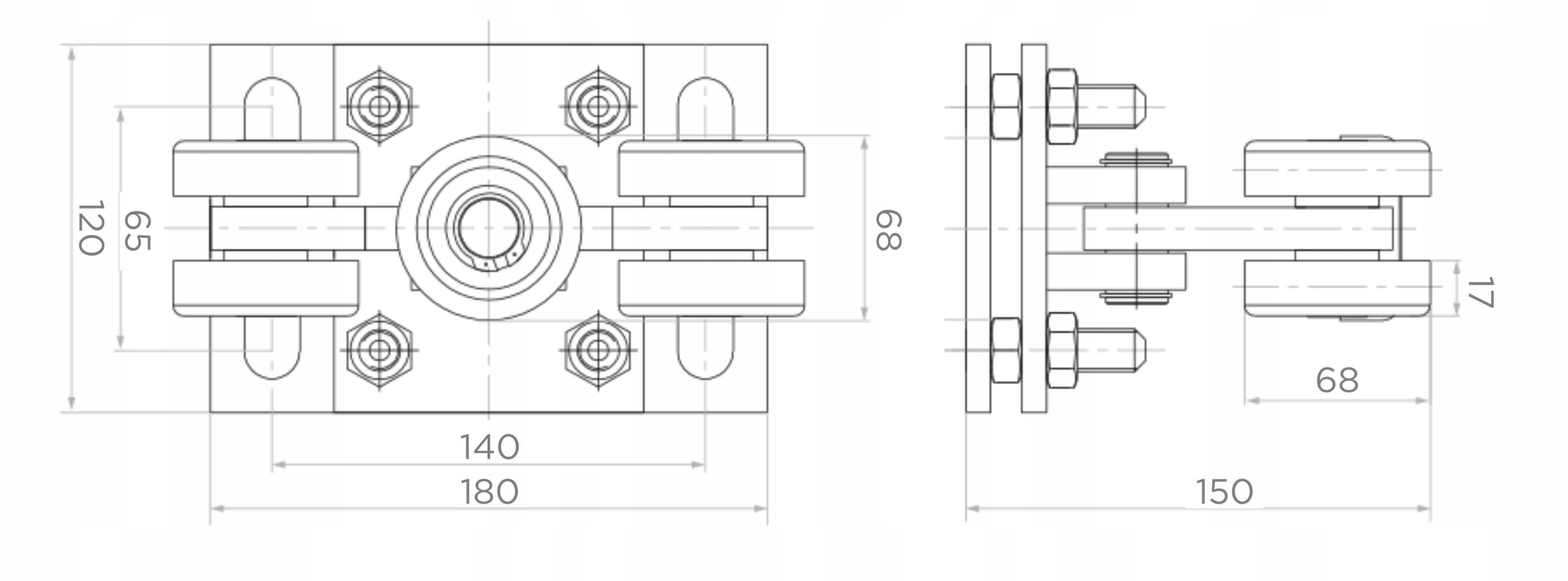 Набір дорожніх візків для розсувних воріт, встановлених для рейок 80x80 мм