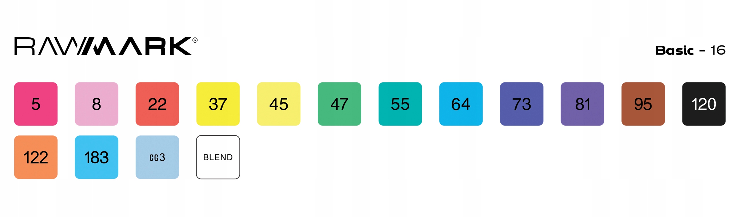 Спиртові маркери RAWMARK Basic Line 16 штук + БЕЗКОШТОВНО!