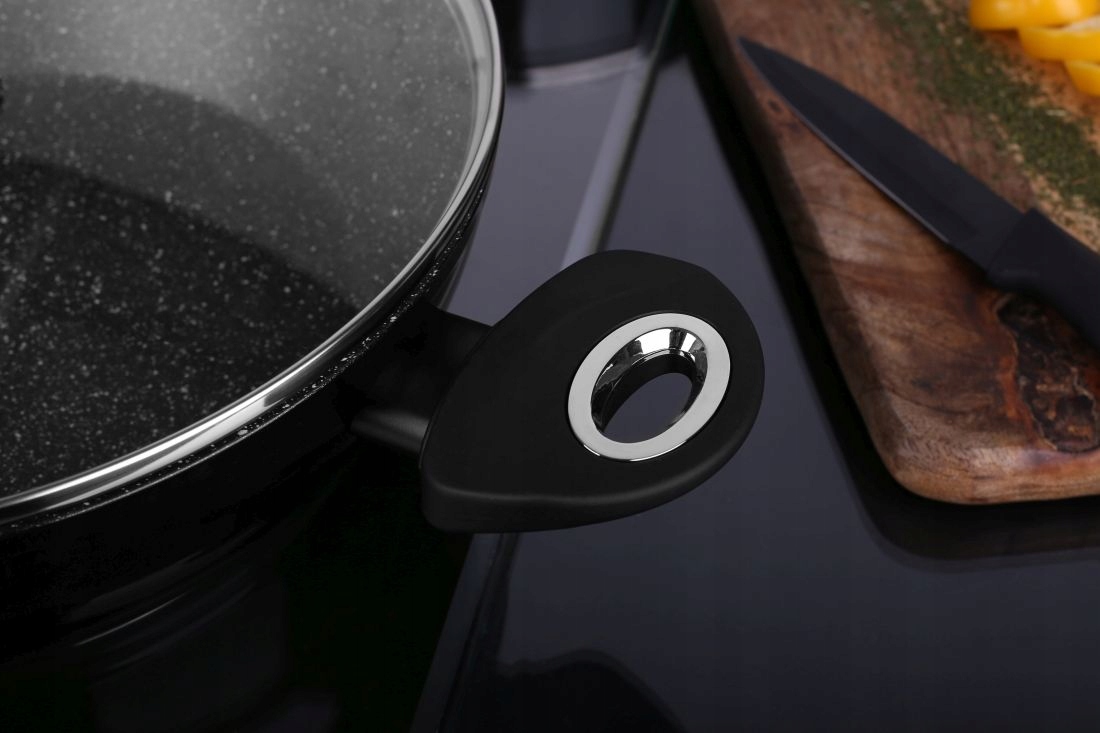 1 x глибока сковорода з кришкою: об’єм: 3,5 л, діаметр: 28 см, висота: 14,5 см, ширина : 44 см