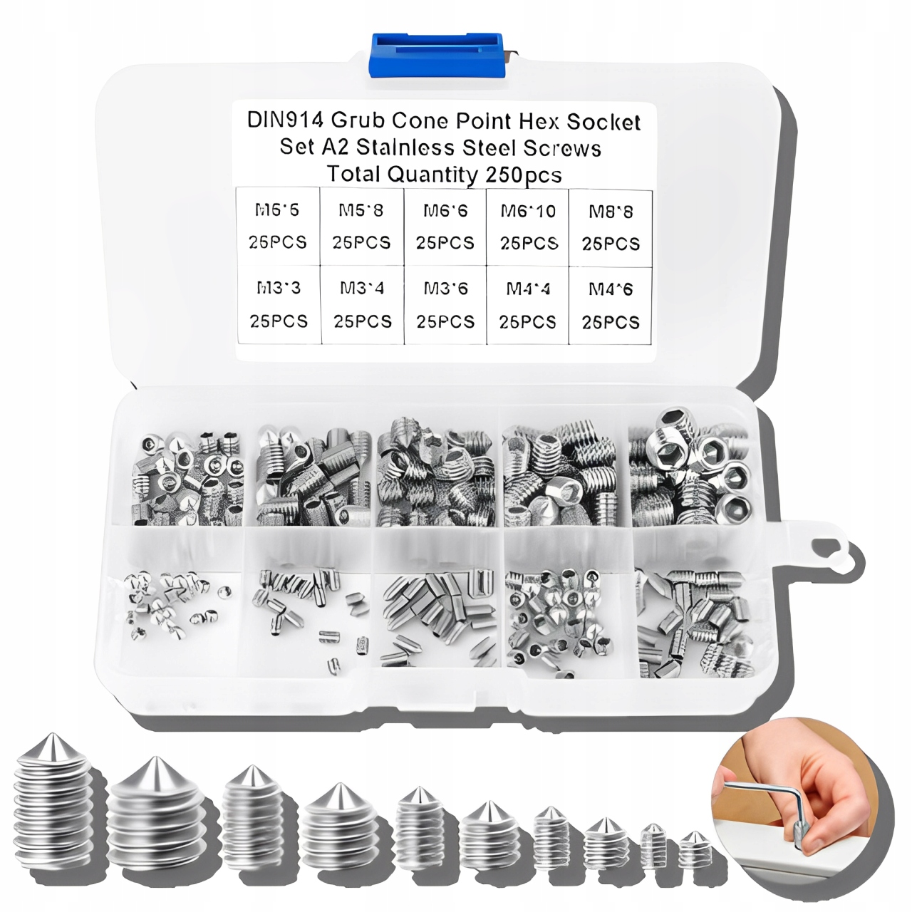 НАБІР ГВИНТІВ ДЛЯ ШЕСТИГРАННИКА ТА ГВИНТІВ ПРИТИСКУ 250 ШТ