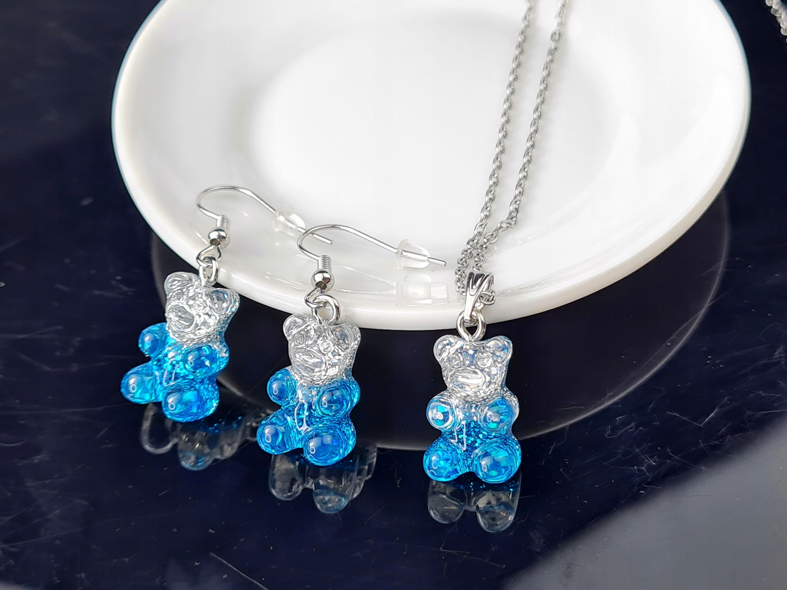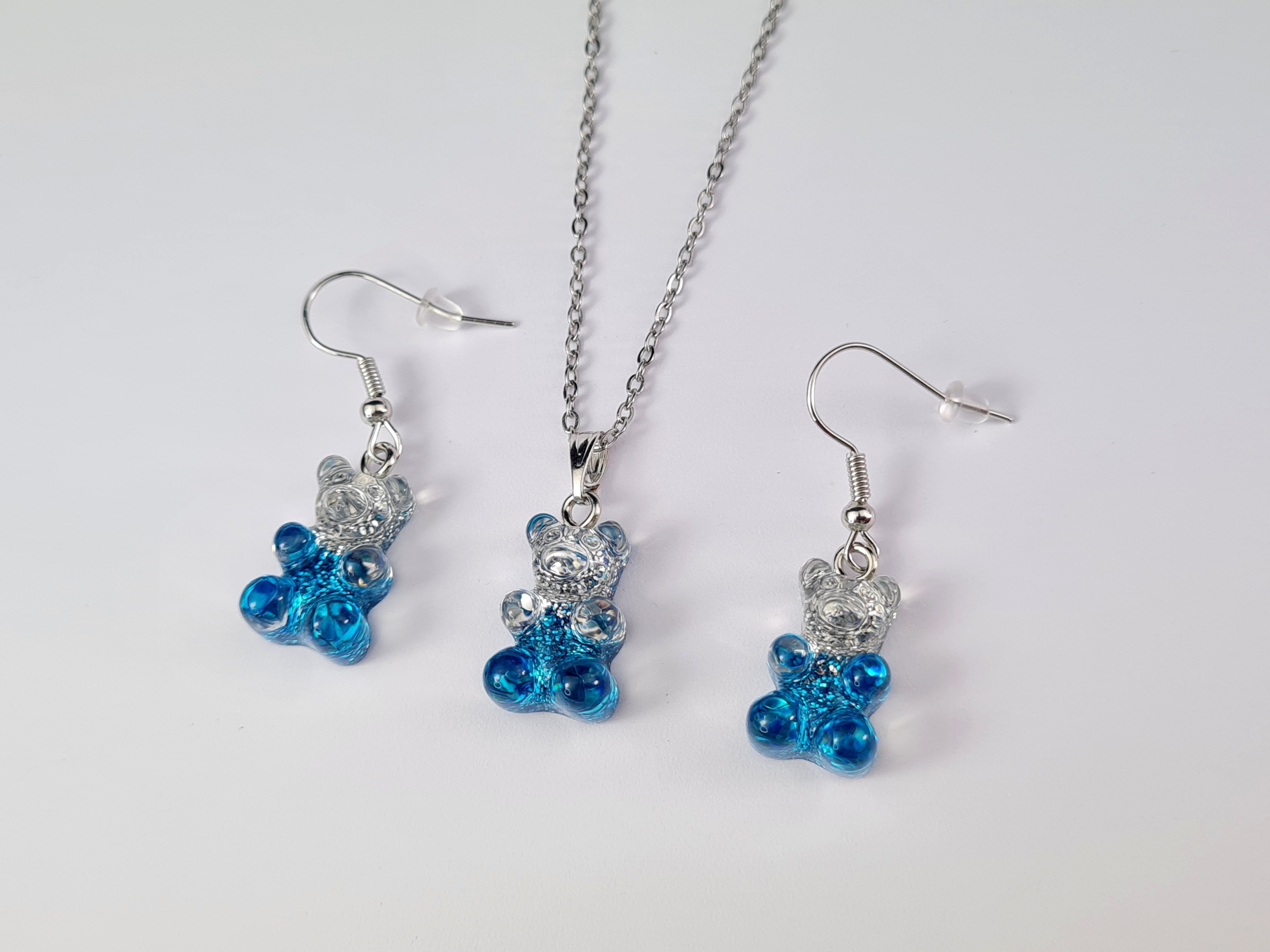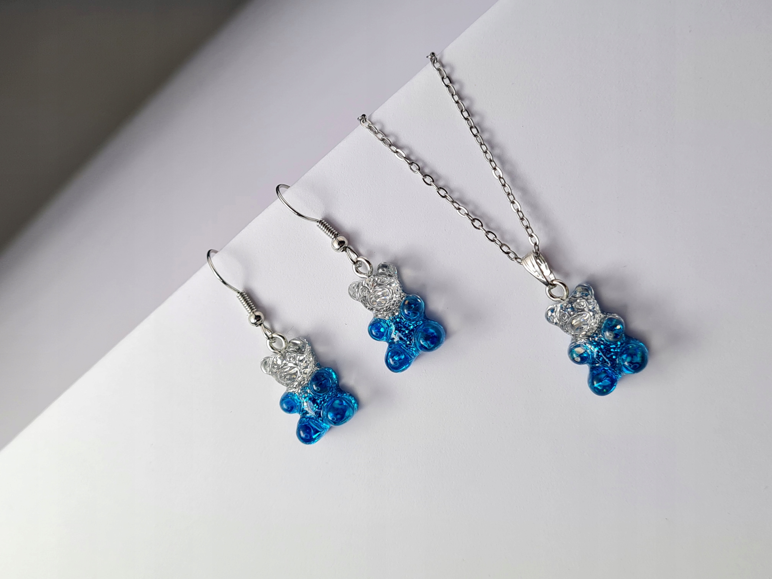 Набір HARIBO BEAR EAARINGS NECKLACE, JELLY BEAR, White and Blue Glitter K12