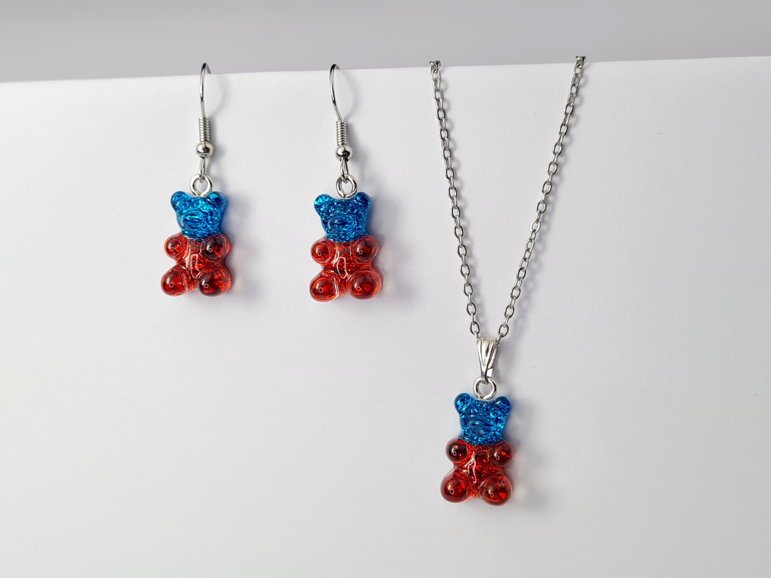Набір HARIBO BEAR EARRINGS HARIBO JELLY BEAR NECKLACE Blue-Red Glitter K14