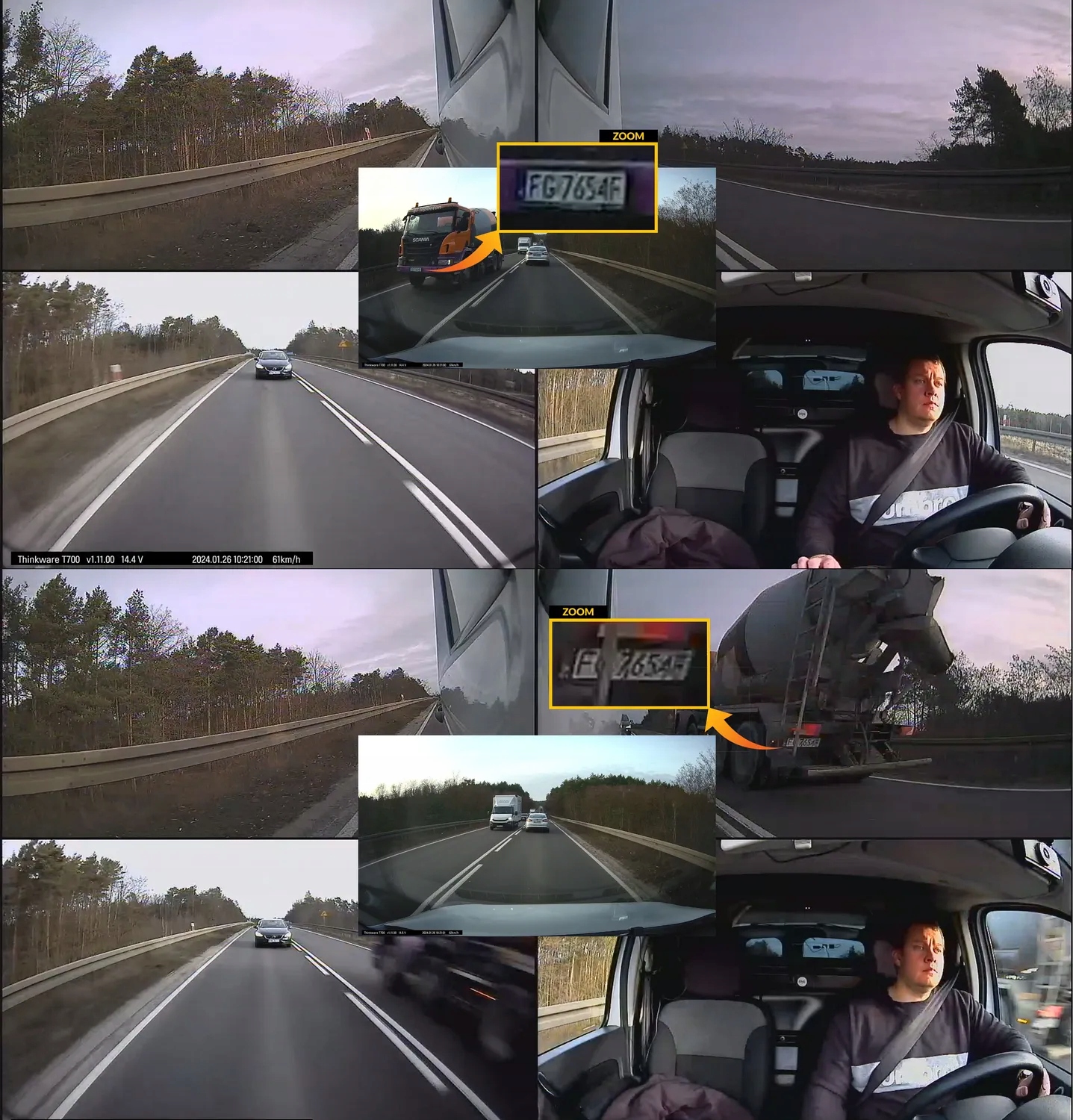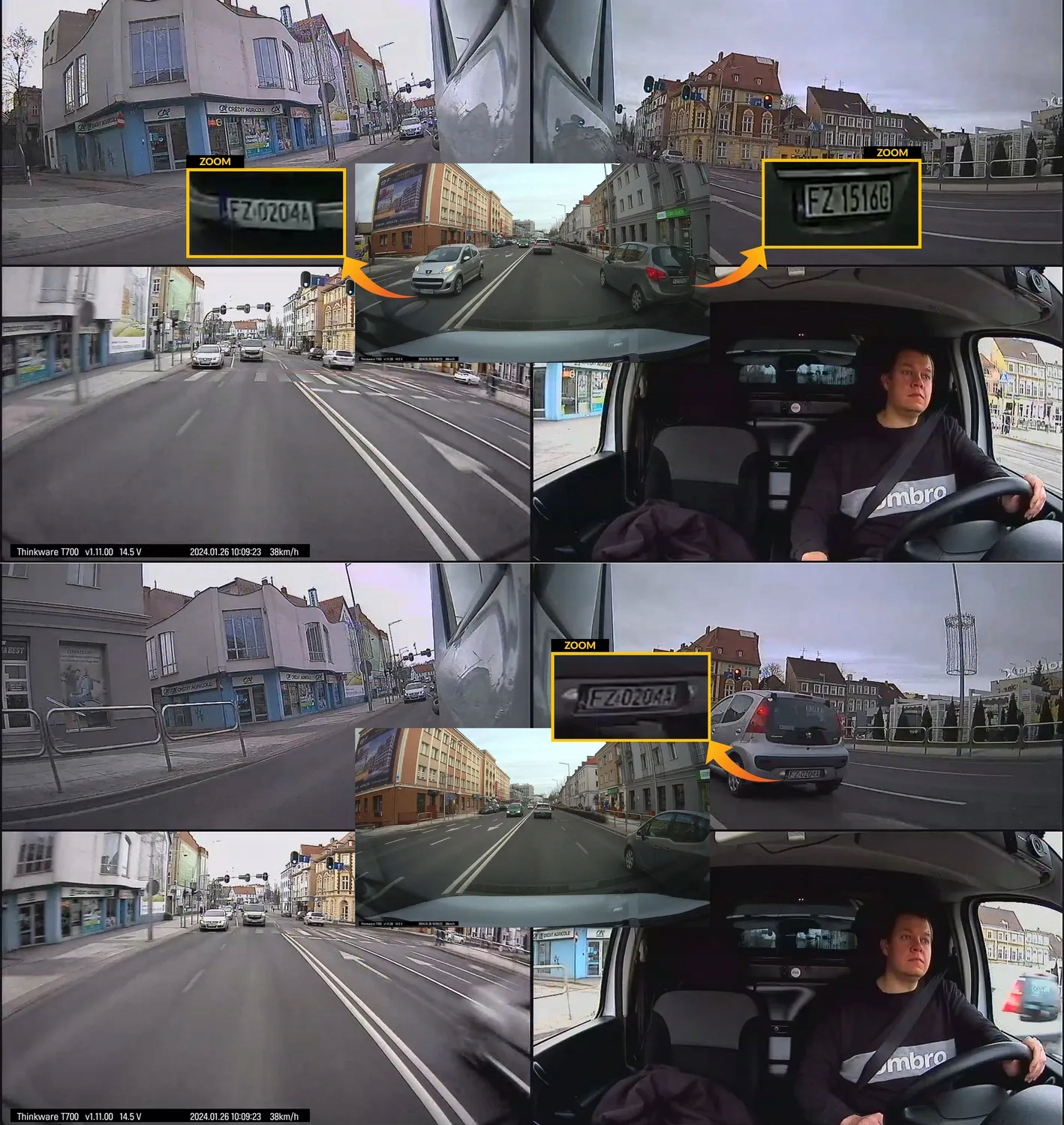 Автомобільна камера Thinkware T700 дозволяє розширити діапазон активного моніторингу транспортних засобів до безпрецедентного рівня (після підключення додаткових аксесуарів набір включає камеру вперед і задню частину транспортного засобу). Він поєднує цю унікальну функцію з підтримкою віддаленого доступу через онлайн -хмару (після встановлення активованої онлайн -SIM -картки в камеру). Це означає, що відео -реконструкція Thinkware T700 - це широка система моніторингу та активного захисту транспортних засобів, як під час руху, так і під час моніторингу паркування . Пристрій також має системи підтримки драйверів, включаючи попередження про швидкість камер.