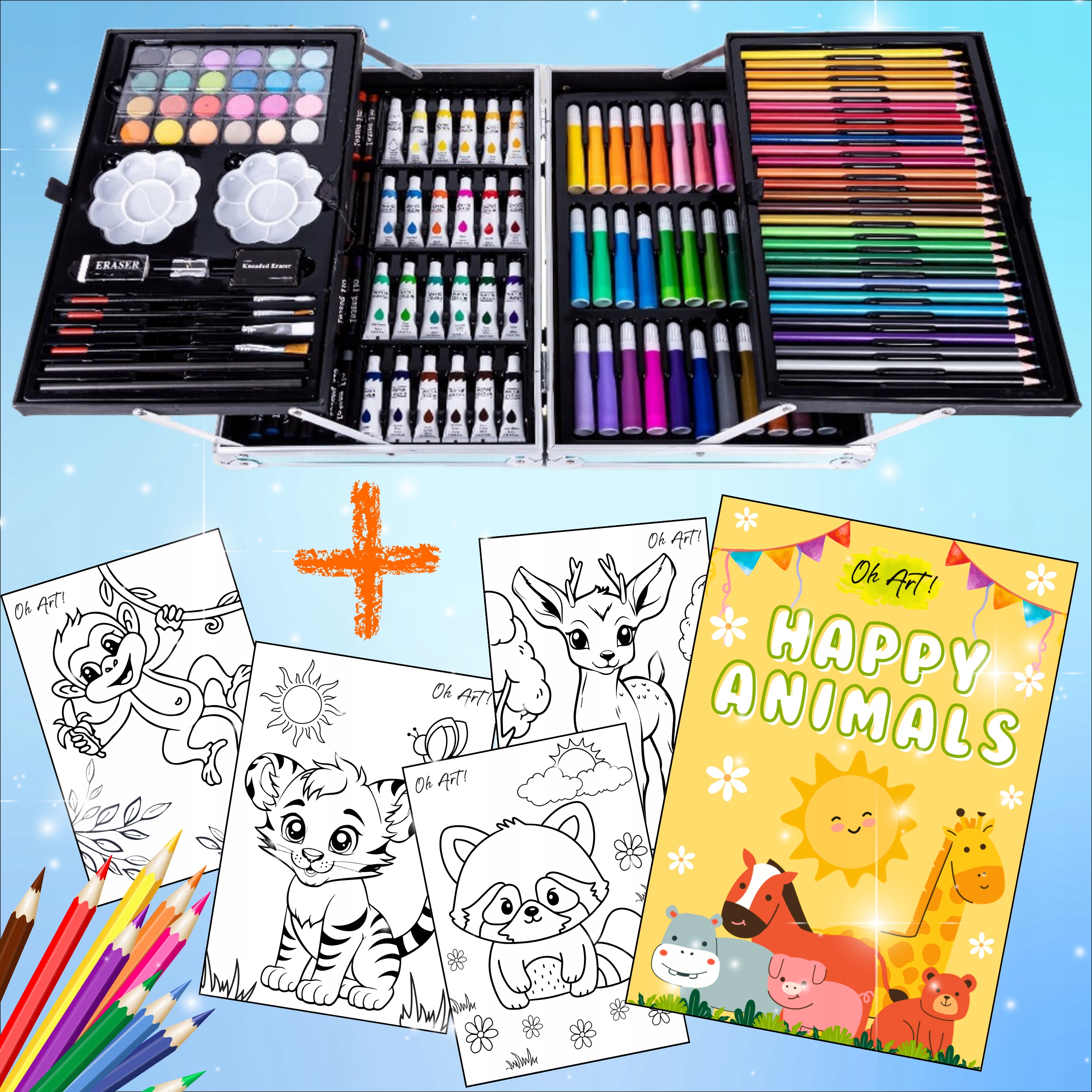 - Набір містить 145 елементів, серед яких акварель, акрил, олійні фарби, кольорові олівці, пастель, пензлі, олівці, гумки, маркери, фарбомішалки та рубанок + Безкоштовна книжка-розмальовка - усі елементи набору відповідають стандартам безпеки ЄС.