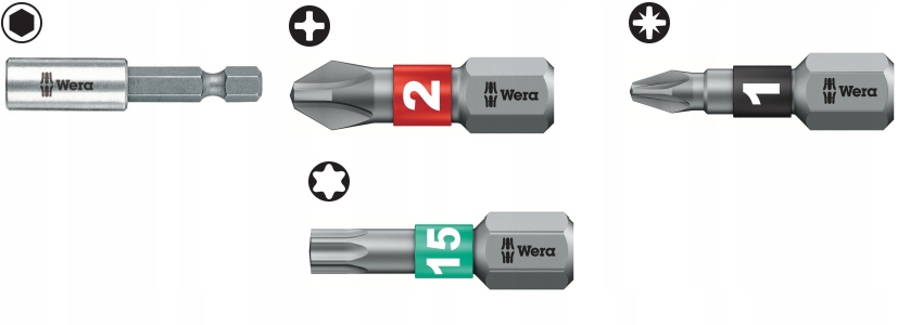 - Викрутки та насадки для гвинтів з прямим нарізом (шліц), хрестоподібних (Phillips і Pozidriv) і TORX®