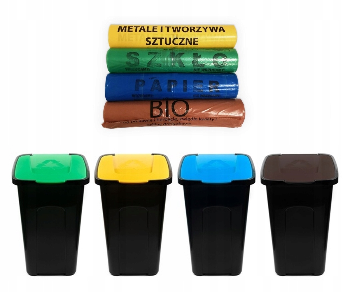 - Колір: Коричневий - БІО, Блакитний - ПАПІР, Зелений - СКЛО, Жовтий - ПЛАСТИК;