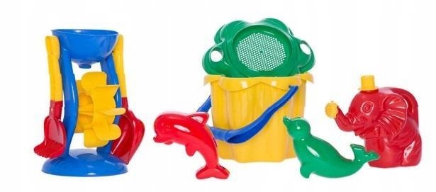 Набір включає «квіткове» відро з ситечком, 2 дельфінами та вальсом форми, лопаткою, обійми, пісок для заливання піску або наливної води та «слонового» поливу. Наша дитина, безумовно, не буде нудно на пляжі. І коли у нас закінчиться вологий пісок, "слон", безумовно, допоможе нам.