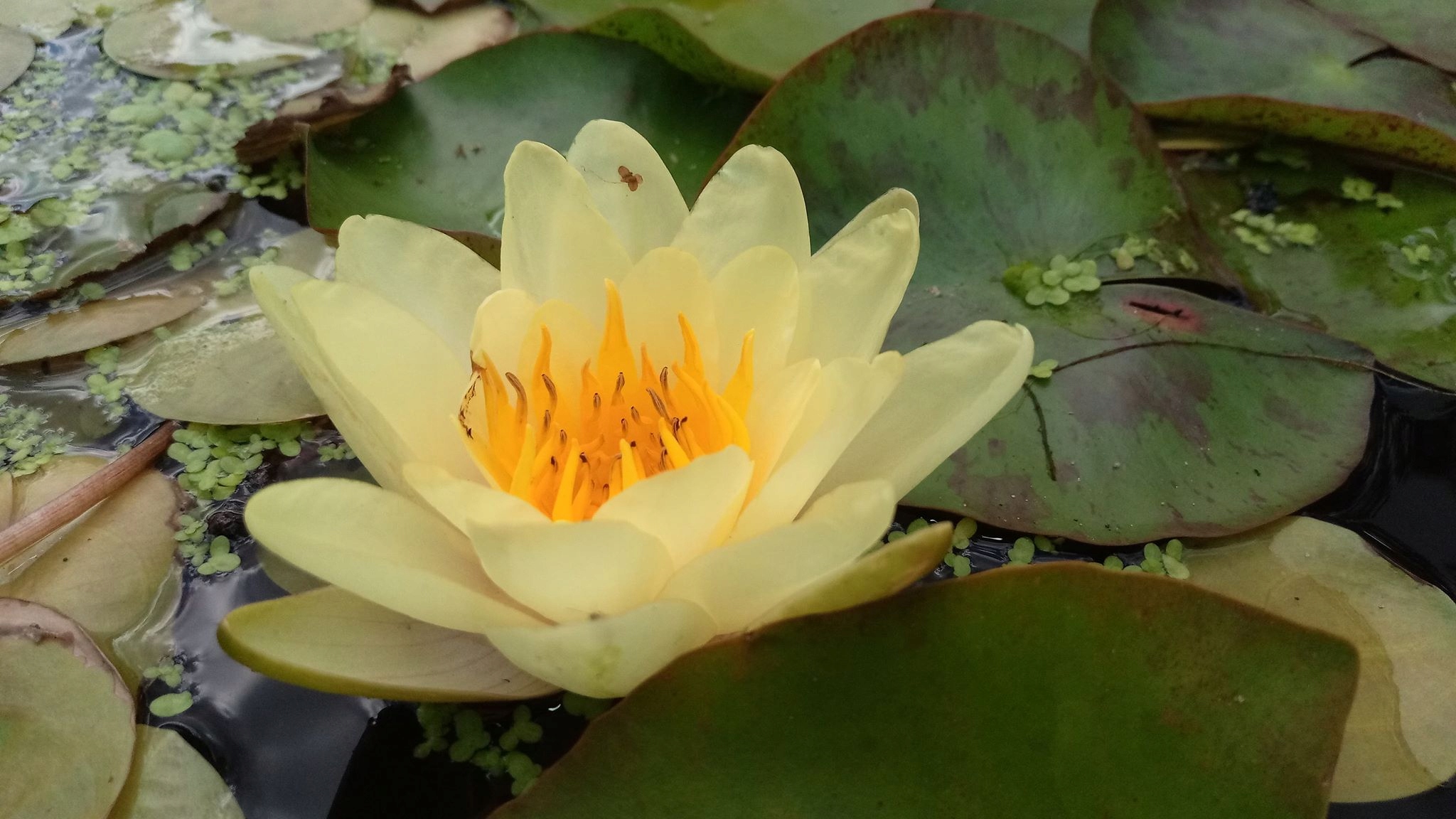 Одна з найпопулярніших лілій у ставках. Колір квітки: великий жовтий або кремовий