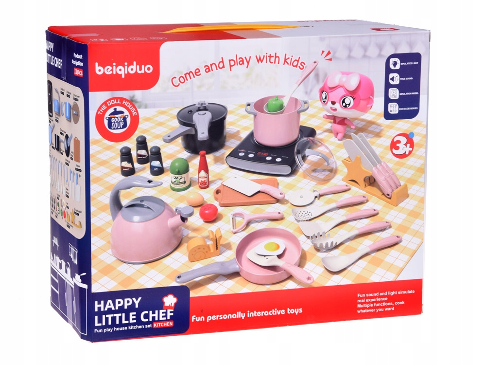- "Маленький шеф -кухар" - це ідеальний спосіб розвинути кулінарну пристрасть у дітей та забезпечити їм велику радість під час гри. Зроблений з безпечного пластику, набір пропонує багато можливостей для творчих розваг, імітуючи дорослих та експериментуючи на кухні. 4 Після включення кнопки, яка розташована внизу печі, дисплей нагрівальна пластина починається, що дозволяє дитині керувати параметрами температури за допомогою кнопок.