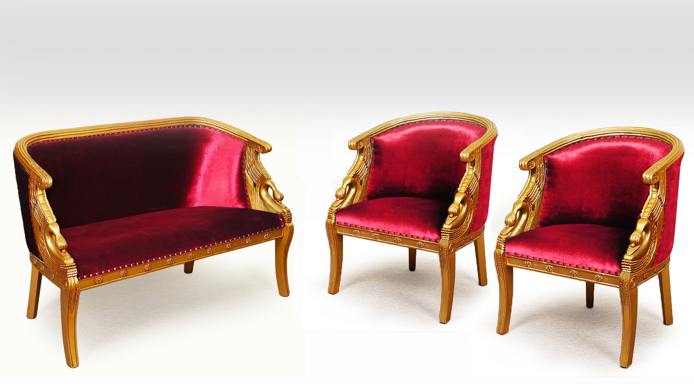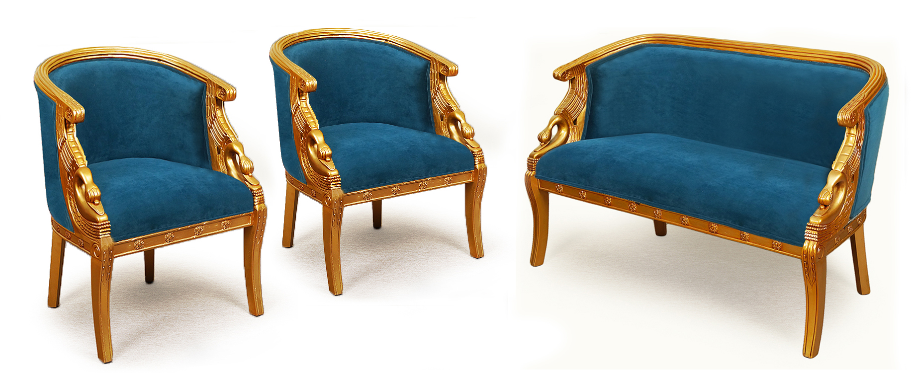 Предмет аукціону - лаунж гарнітур (диван + 2 крісла) в стилі ампір з мотивом лебедя.
