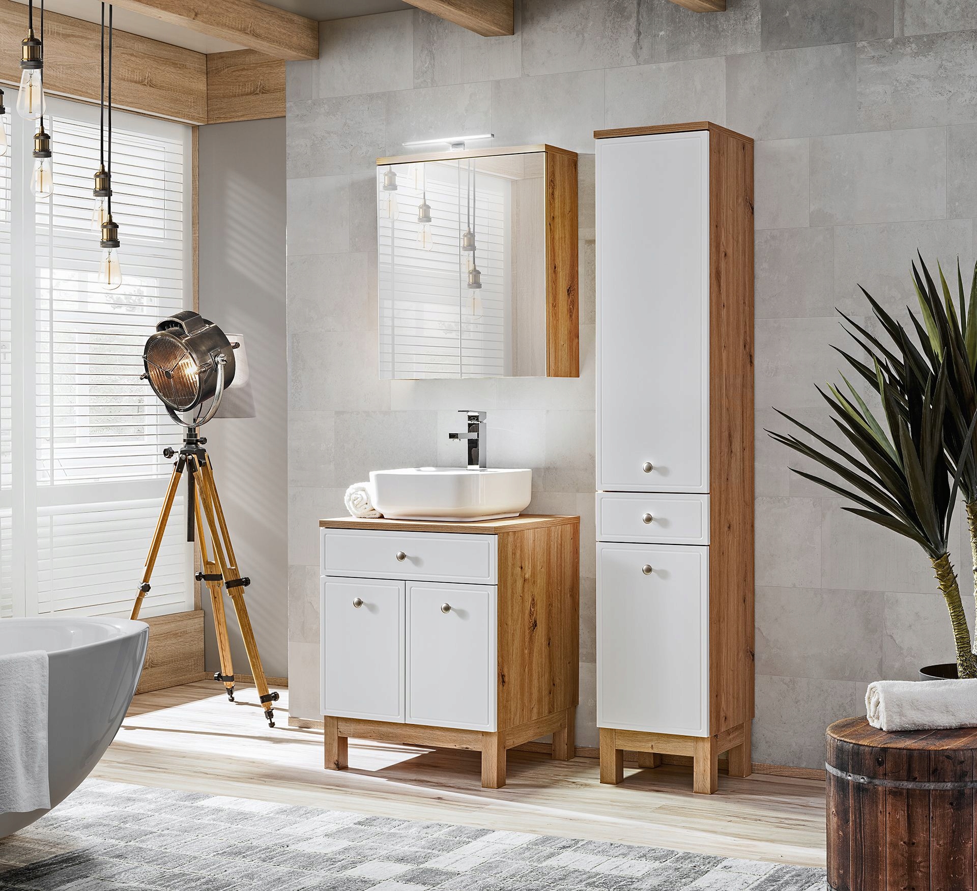 Колекція Самоа - це оновлена класика в сім'ї наших меблів у ванній кімнаті. Білий, Метт, фрезерні фронти в поєднанні з Artisan Oak утворюють затишну, стильну та елегантну колекцію. Колекція Самоа - це лінія для вимогливих. Він характеризується точністю, стилем та елегантністю. Він був розроблений відповідно до останніх тенденцій дизайну інтер'єру.