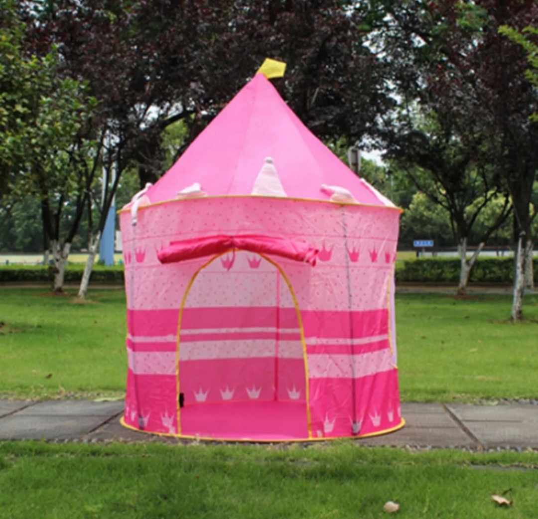 Намет для дітей — чудова розвага протягом довгих годин. Дитячий будиночок з тканини у формі чарівного замку - подарунок мрії кожної дитини. Дитячий палац має два вікна з тонкої сітки і вхід на липучці. У ньому можна сховатися з улюбленими іграшками і дати волю своїй уяві. Намет для дітей стане ідеальним місцем для емоційних і творчих ігор як вдома, так і на природі - наприклад, у саду, на пікніку, на терасі чи на пляжі.