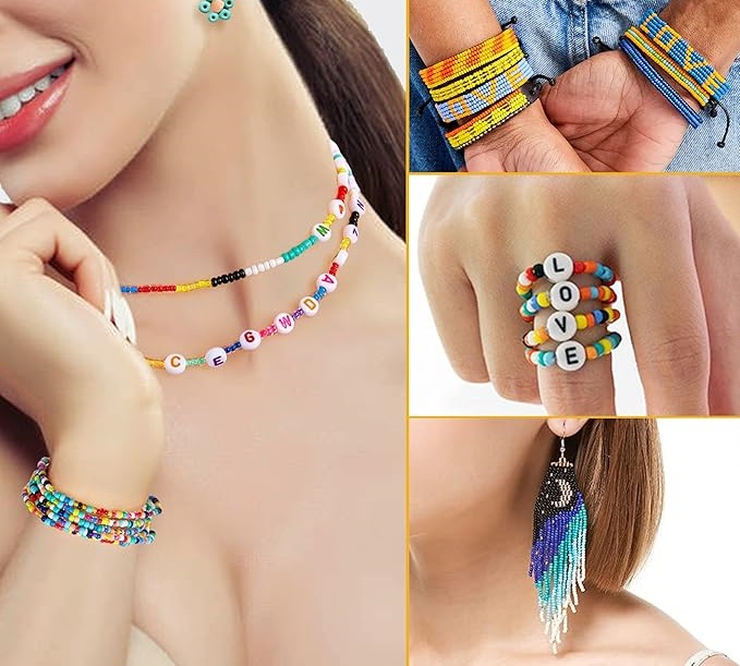 - 【багато типів намистин】 2 типи скляних намистин (прозорі та кремові) та 2 типи намистин з листами (колір і чорний), а також сердечні намистини, завдяки яким ваші ювелірні вироби будуть більш барвистими. Перлові браслети. Простий у використанні для початківців майстрів у багатьох кольорах та типах намистин з літерами. Браслети, кольє, кільця, сережки, кілорування та інші ремесла. Іноді ти насолоджуєшся DIY!