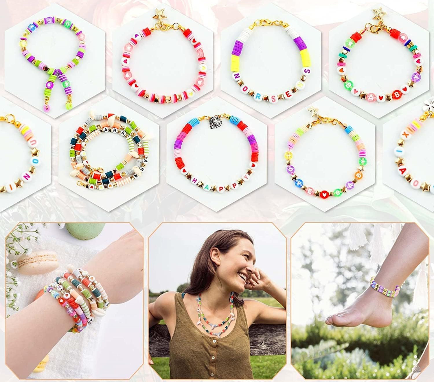 Магія кольорів і блиску, літер, сердечок, зірочок, підвісок з черепашок або унікальних шармів чи чарівних бус з посмішкою та численних аксесуарів дозволять маленькому дизайнер для виготовлення декоративних унікальних ювелірних виробів. Набір поєднує плоскі та круглі намистини, у тому числі красиві перлинні та срібні намистини, а також численні аксесуари, що дає вам безмежні можливості для створення модних прикрас, таких як: намиста, ланцюжки, кольорові браслети, браслети з іменами, браслети дружби, каблучки, ланцюжки для окулярів, брелоки. .