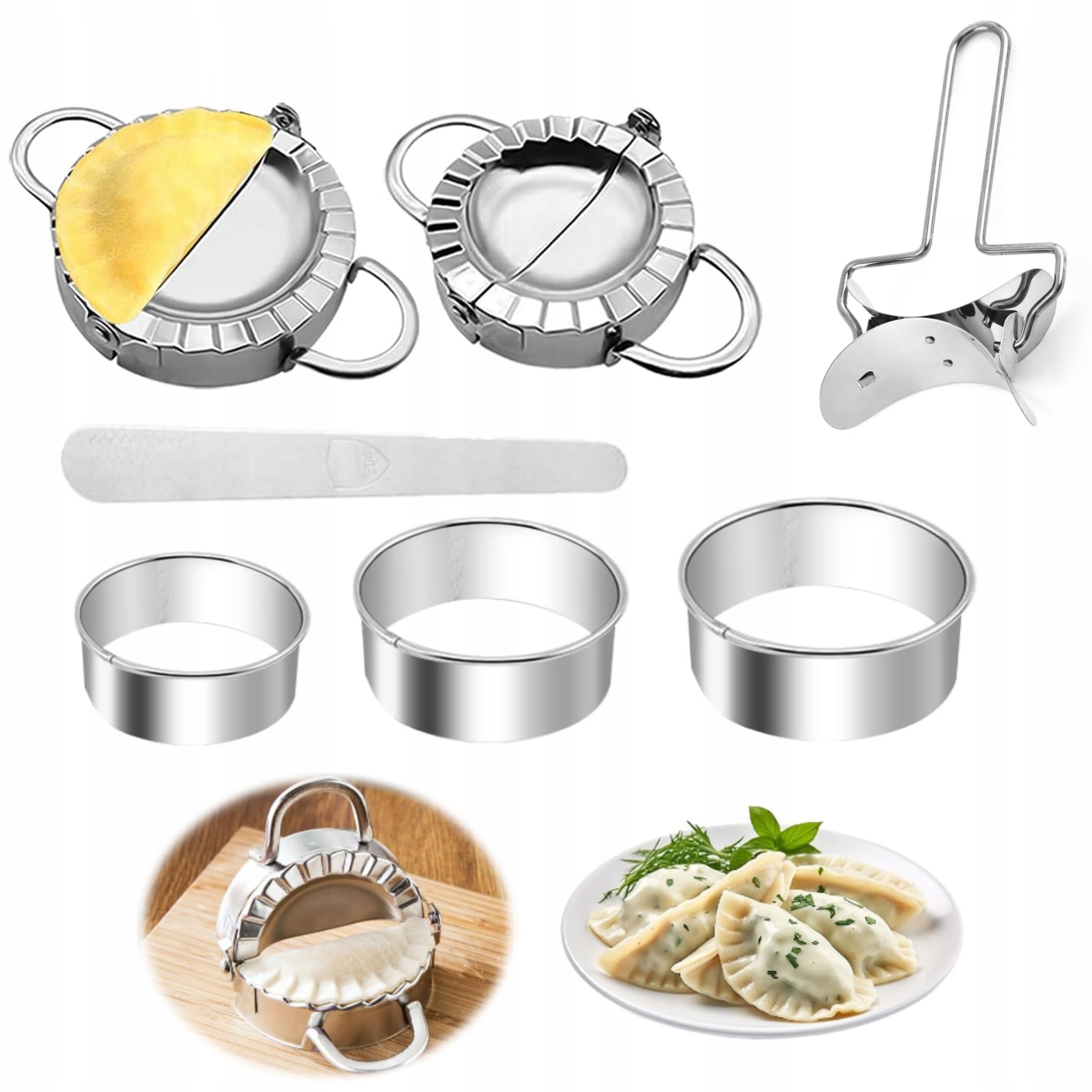 Відкрийте таємницю ідеальних, домашніх пельменів та вух з нашим повним, 7-елементним набором! Виготовлений з найвищої якості нержавіючої сталі, вона гарантує безпрецедентну довговічність, надійність та простоту використання та очищення. Приготуйте свої улюблені страви швидко, точно та з справжнім задоволенням!
