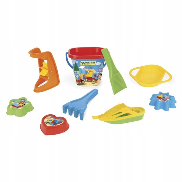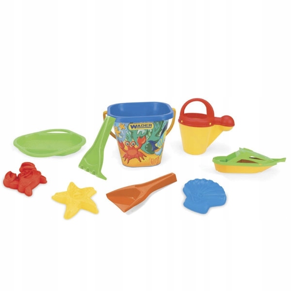 Він поставляється в 2 кольорах. Кожен набір містить 9 елементів: шпатель, ріг, 3 форми (оболонка, краб і зірка або серце, зірка та квітка), моторний човен, піщана шліфувальна машина або поливна банка, ситечко та відро з цікавою графікою, виготовленою за допомогою IML.