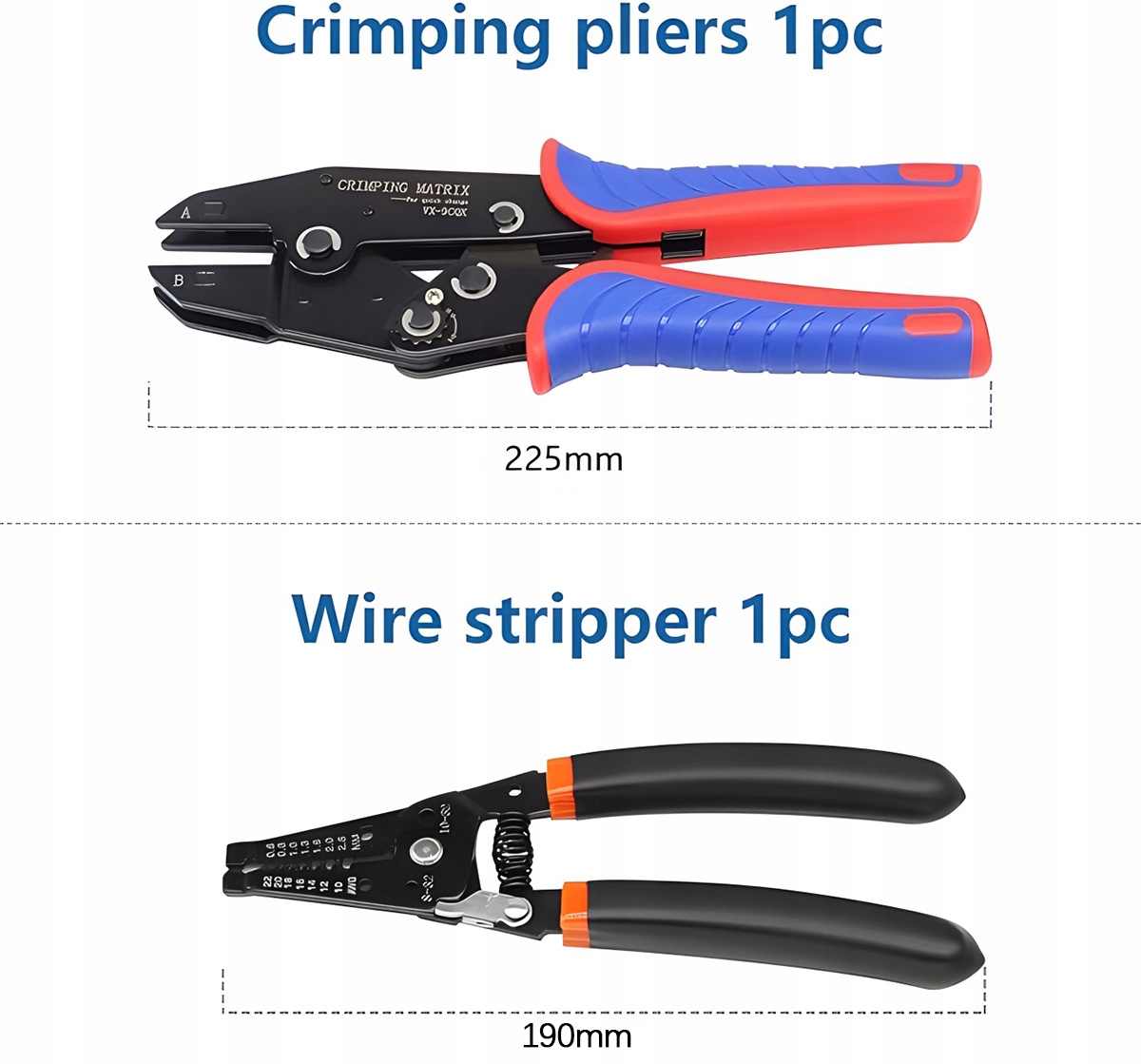 НАБІР ПЛОСКОГУБЦІВ 9ДЮЙМІВ ДЛЯ ЗАТИСКАННЯ КОНЕКТОРІВ 5 МАТРИЦЬ КЕЙС