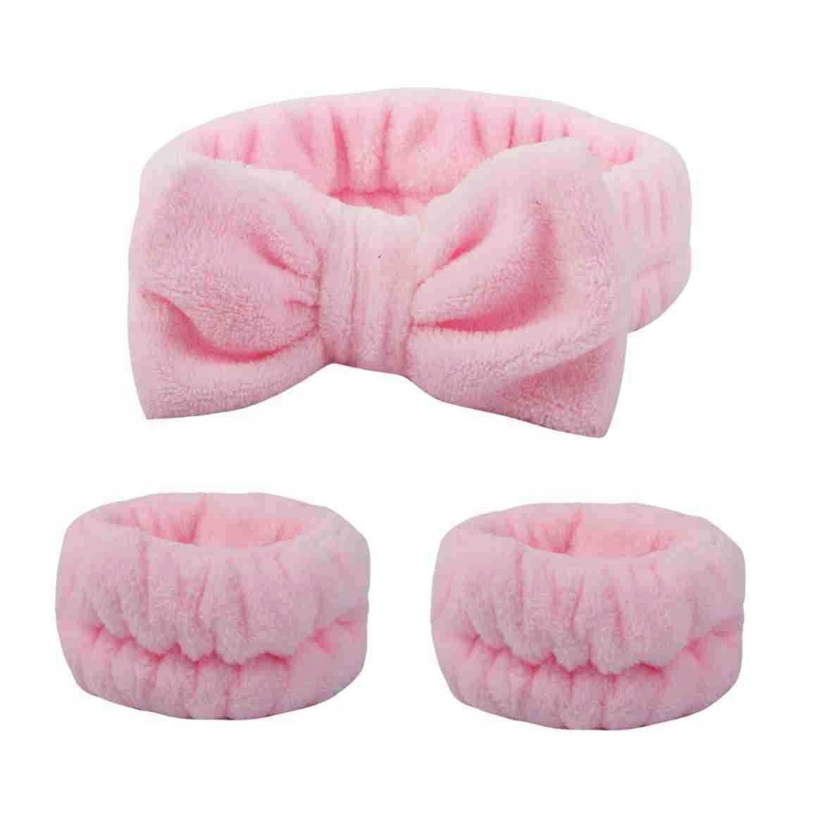 НАБІР ПОВ'ЯЗКИ НА ГОЛОВУ ВОЛОССЯ І ЗАП'ЯСТЯ ДЛЯ ВМИВАННЯ ОБЛИЧЧЯ МЕЙКАП РОЖЕВИЙ