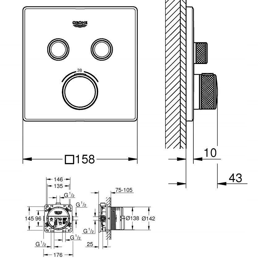 Набір прихованого монтажу Reihe + термостатний кран Grohe SmartControl 30x19 см