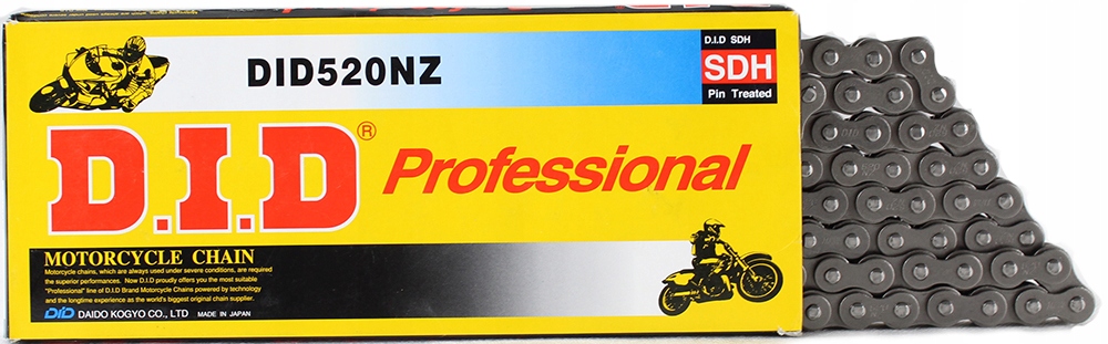 D.I.D. Це найбільший постачальник оригінальних деталей (ОЕ) для японських та європейських виробників мотоциклів. Вони насолоджуються глобальною репутацією завдяки найвищому якості та надійності. Ланцюги приводу виробляються в Японії та доставляються виробникам мотоциклів у всьому світі. Ці продукти найвищої якості ретельно виконуються кваліфікованими техніками, щоб забезпечити унікальну продуктивність для всіх користувачів мотоциклів. Це зосереджено увагу на досконалості, яка D.I.D. Він пропонує вже понад 80 років.