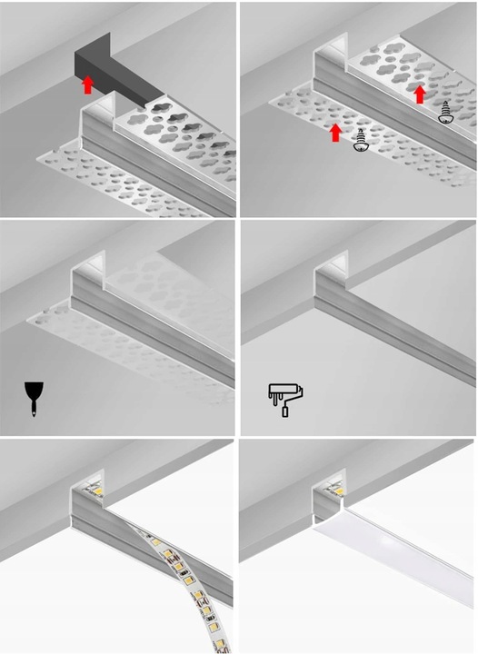 - спеціально розроблений для будівництва в гіпсових дошках --профілі може бути інтегрований у підвісну стелю, стіни або ніші, створюючи ефект стриманого, сучасного освітлення