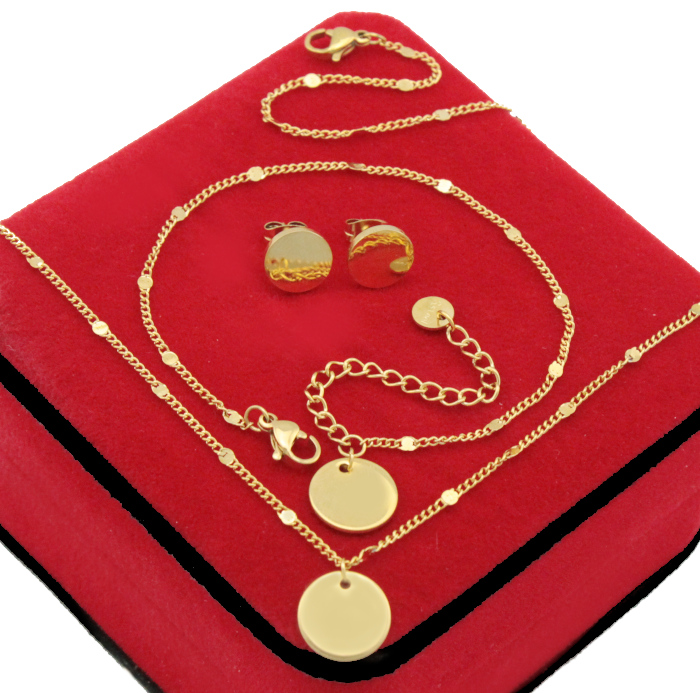 Набір золотих прикрас із хірургічної сталі, намисто, браслет і сережки, мотив бляшки