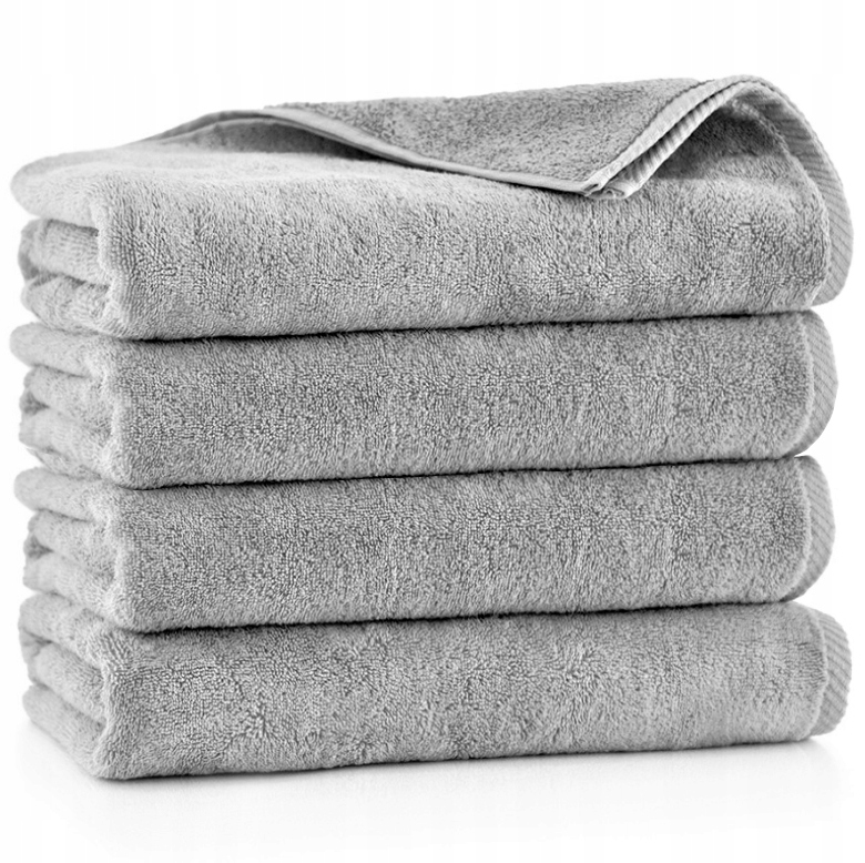 Набір з 4 махрових рушників зі 100% бавовни світло-сірого кольору. Вони приємно огортають і підсушують тіло після ванни, і водночас є окрасою кожної ванної кімнати.