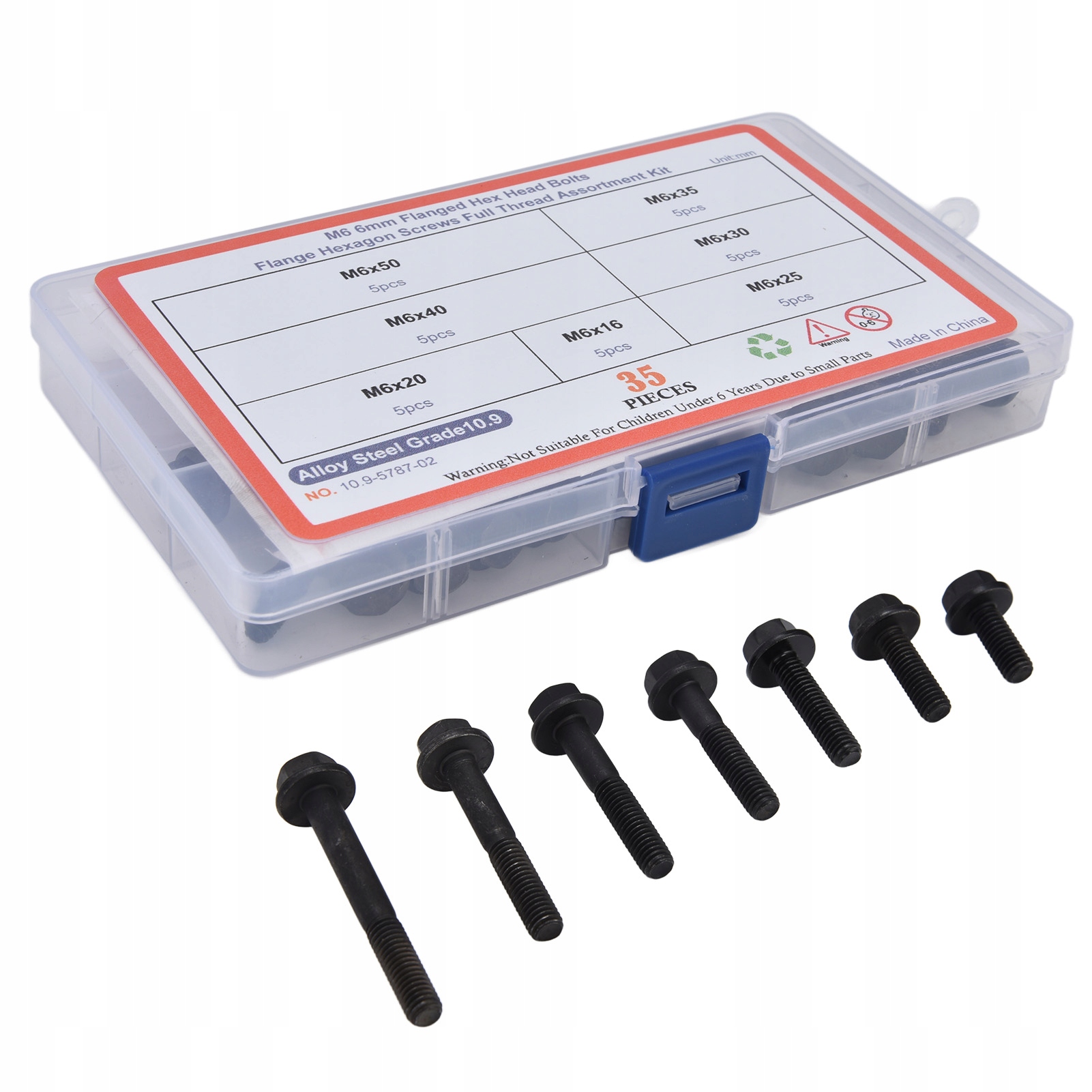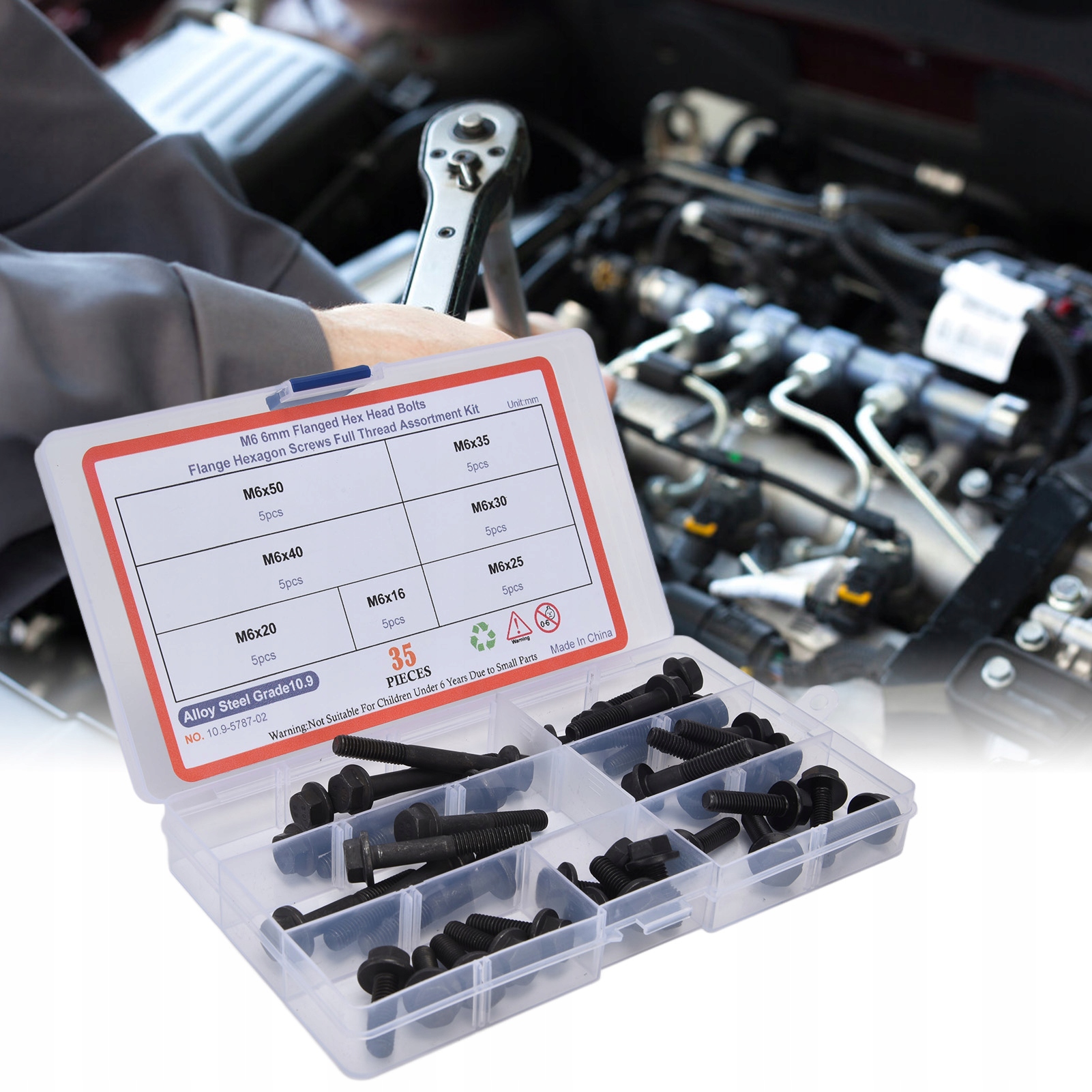 Набір шестикутних гвинтів 35pcs M6 Фланець 10.9 Вуглецева сталь чорний