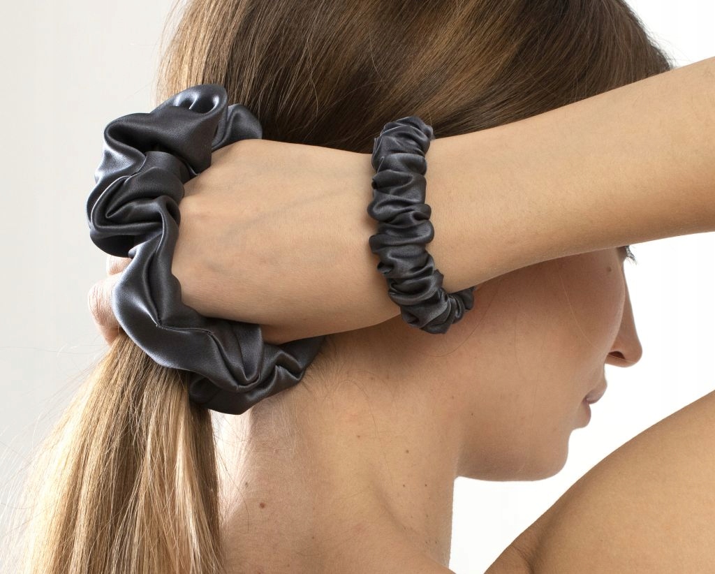 Резинка зі 100% шовкового атласу плавно ковзає по поверхні волосся, запобігаючи його висмикуванню та ламканню.