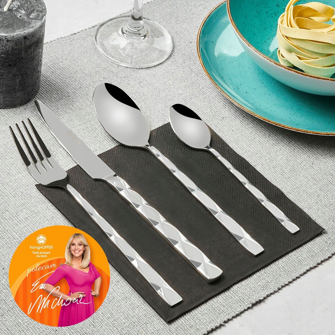 Столові прилади DIAMOND відрізняються стильним дизайном і простою формою, що робить їх дуже зручними і ідеально лягають в руку. З цим набором ви створите елегантний класичний посуд.