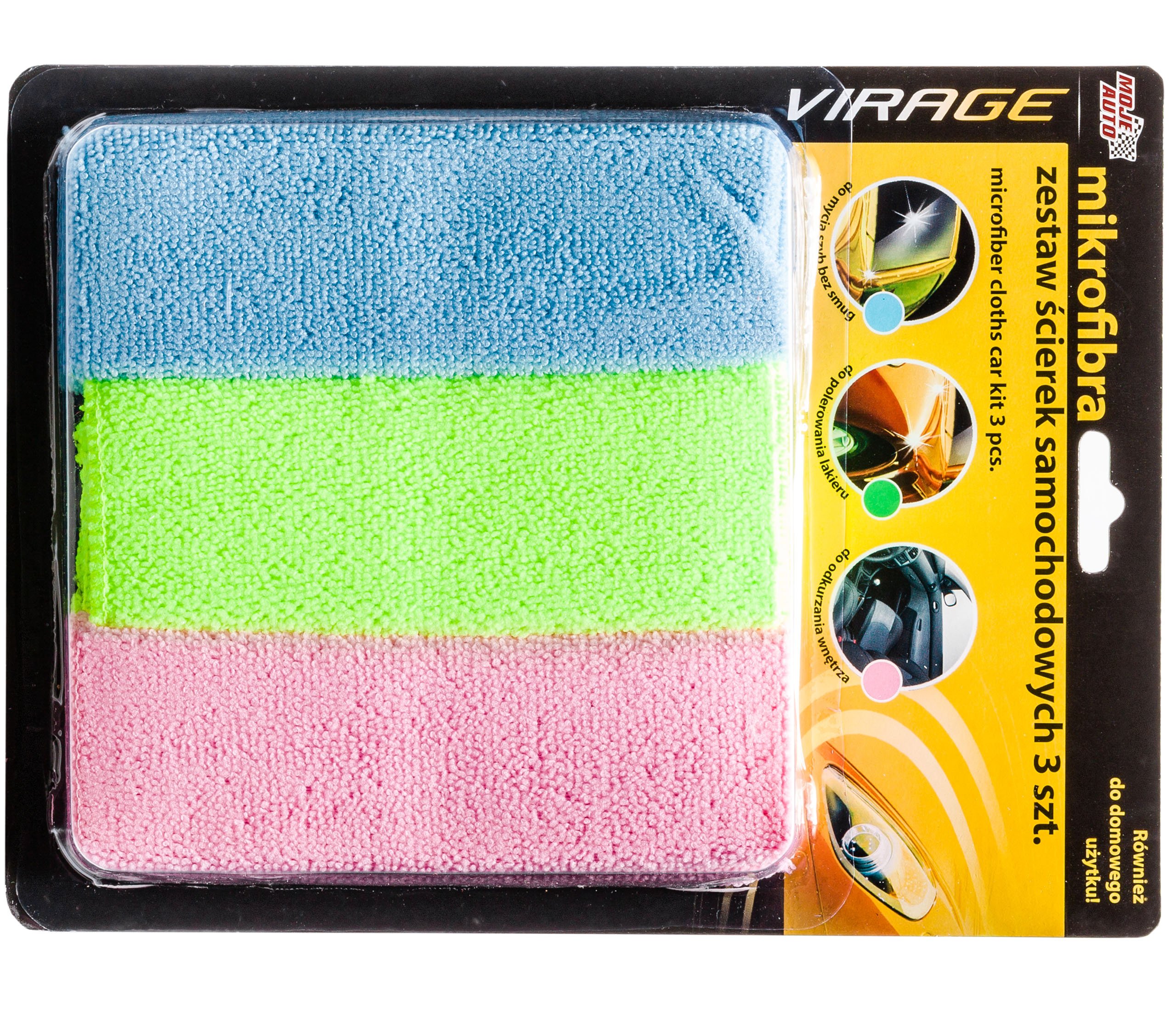 Опис : сенсаційні, тканини, 3 шматки автомобілів. Виготовлений з матеріалу - мікроволокна, який поглинає до восьми разів більше води, ніж власна вага мікроволокна. Вони працюють без використання додаткових хімічних речовин, вони можна багаторазово, після промивання вони зберігають свої властивості. Рожева тканина - ідеально підходить для видалення пилу з усіх внутрішніх поверхонь. Синя тканина - ідеально підходить для очищення вікон без смуг. Зелена тканина - рекомендується для полірування автомобілів лаків. Дуже добре виготовлення, не викликають подряпини очищених поверхонь. > Розміри: