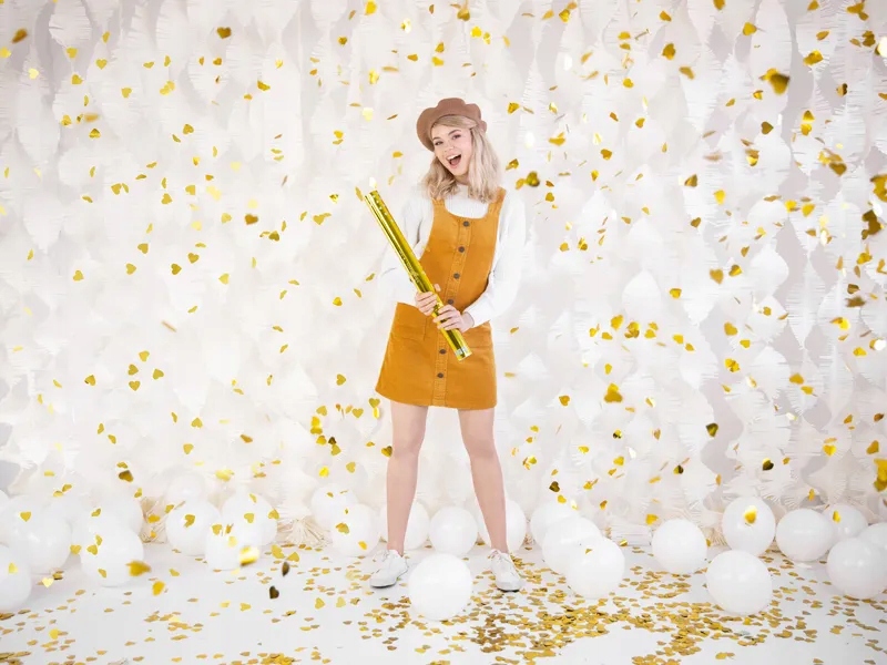 З трубкою кожна вечірка буде справжньою. Здивуйте нареченого та нареченого та привітайте їх з роєм сердець. Ви можете легко адаптувати наші зйомки для вечірки з будь-якою темою. Стрільба з біло-золотими сердечками — чудовий аксесуар, наприклад, для гостей, які зібралися перед церквою, чекаючи нареченого і наречену. Просто поверніть нижню частину трубки, і біло-золоті сердечка піднімуться вгору завдяки стисненому повітрю.