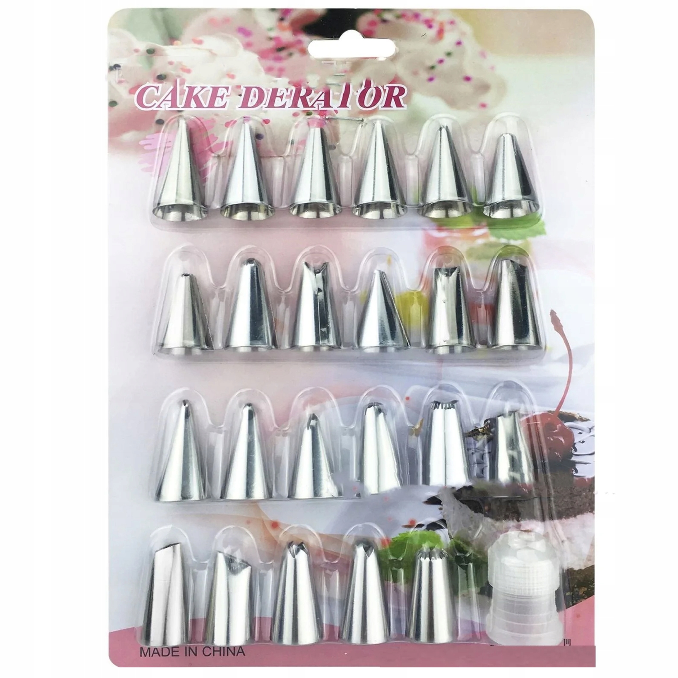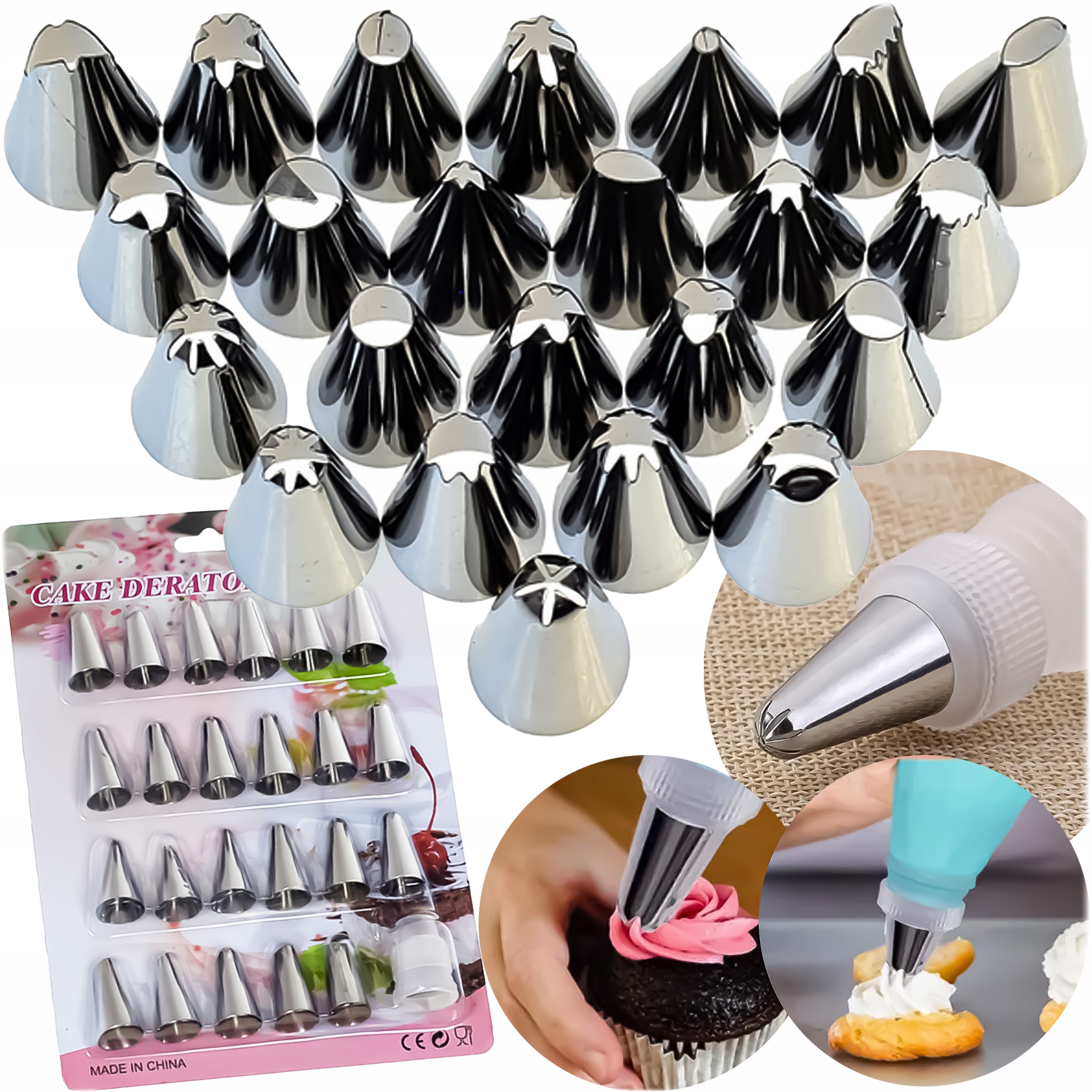 Універсальний набір кондитерських насадок, незамінний при оздобленні випічки. Набір включає, серед іншого, наконечники дляписьма, листя, квіти, розетки, зірочки, волани тощо.