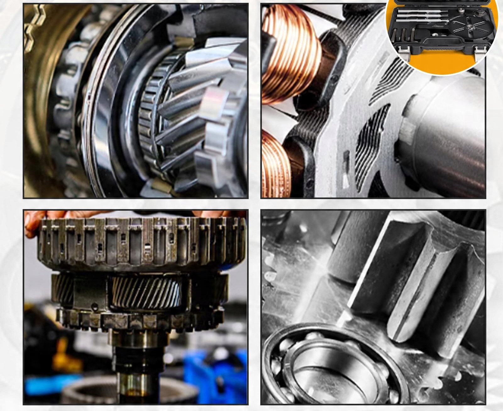 Кожен елемент інструменту для демонтажу підшипника розміщується в міцній пластиковій валізі з ручкою для безпечного зберігання та швидкої організації. Кожна частина має точно відповідні гнізда, які забезпечують порядок у обладнанні та продовжують термін експлуатації інструментів. Різні розміри затискання рукавів та 3 вигнуті гачки. Підходить для підшипника 6005/6006/6007/6008/6009/6010/6205/6206/6207/6208/6209/6210/6305/6306/6307/6308/6309/6310. Додано три нові гачки, що робить демонтаж більш зручним і може бути використаний для більшої кількості підшипників з різними специфікаціями.