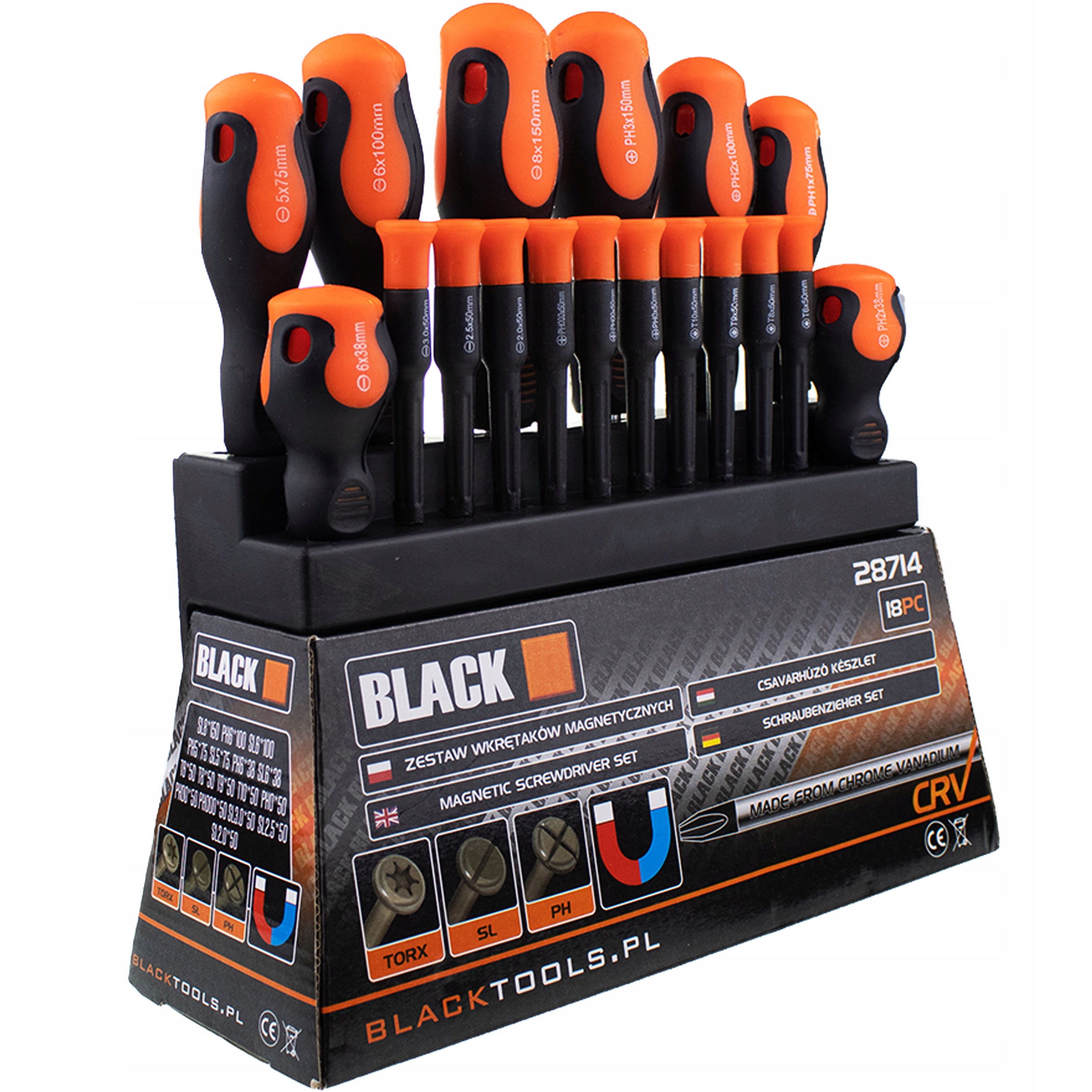 Набір з 18 різних викруток і викруток. Виготовлений з матеріалів найвищої якості. Основні хвостовики викрутки виготовлені з дуже міцної хром-ванадієвої сталі.