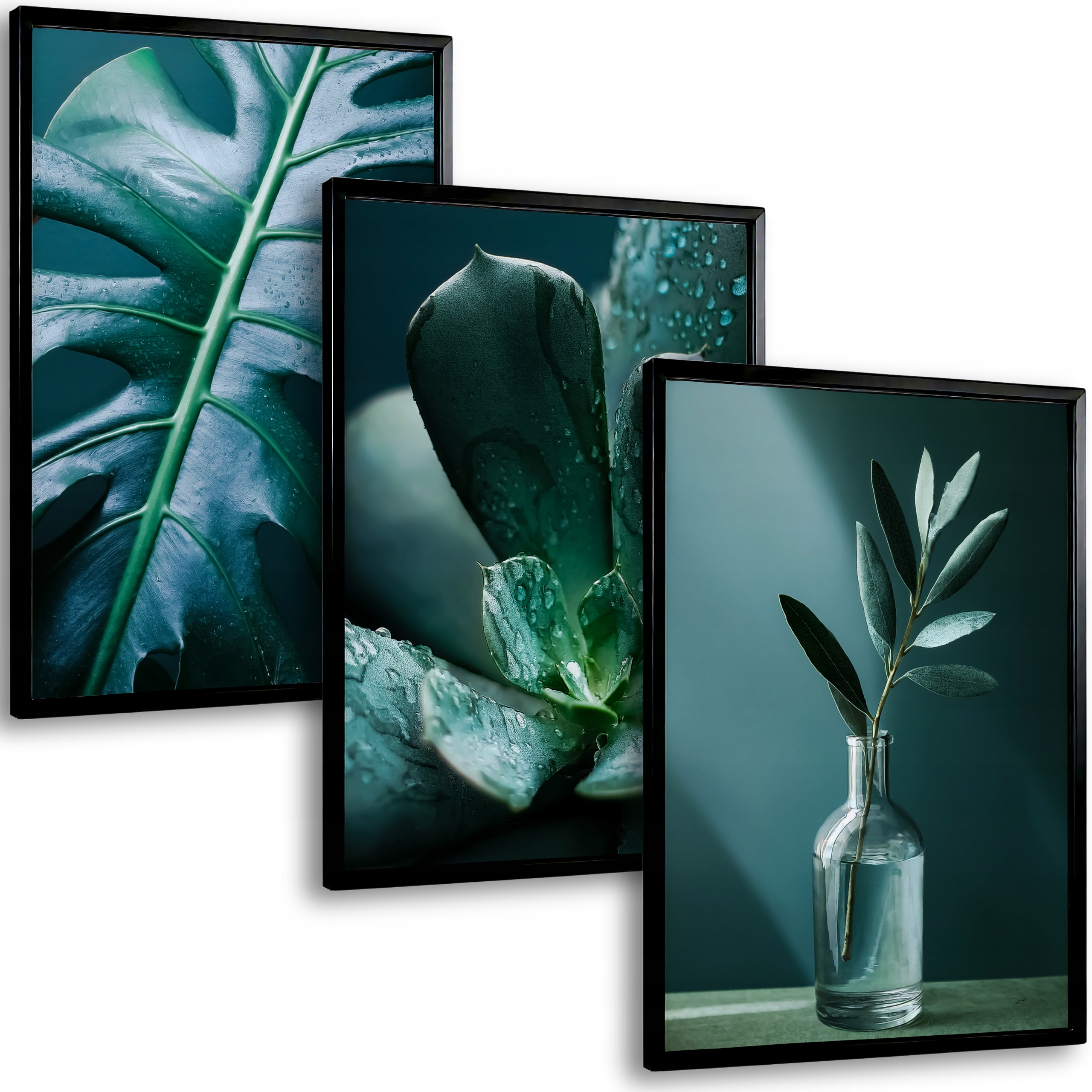 Набір з 3 картин у рамках плакатів Зелене листя тропічні рослини монстра