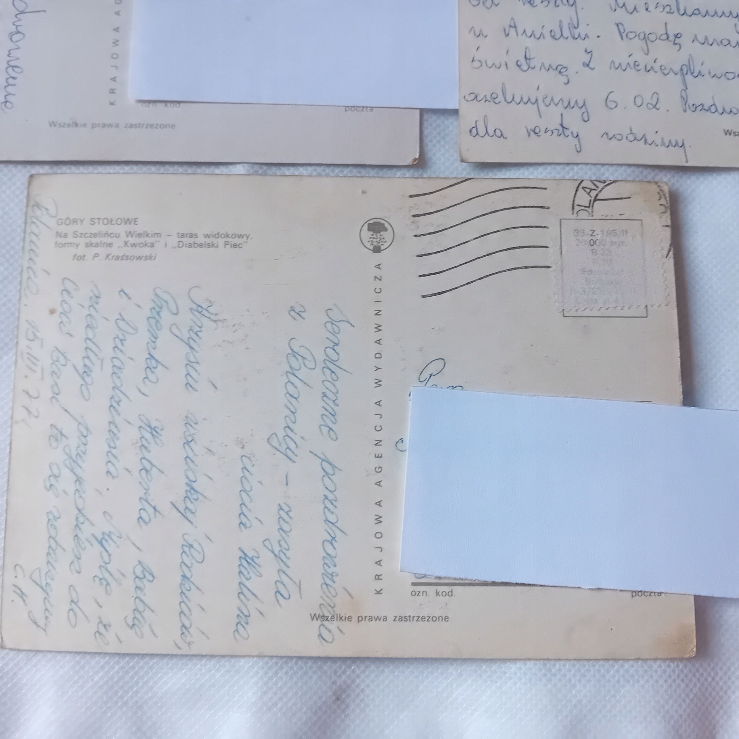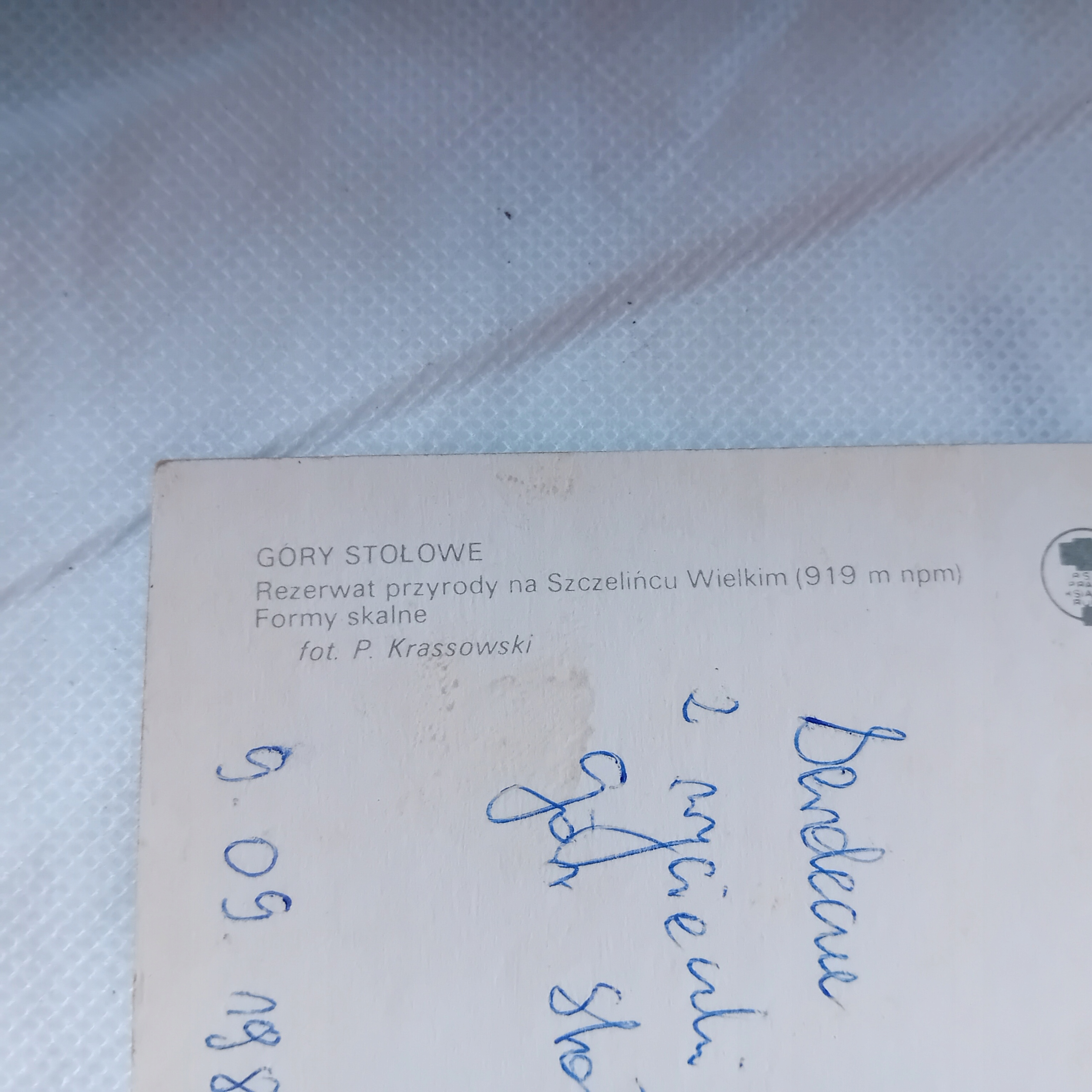 spzredam набір з 3 листівок: столові гори. Видавець: Kaw. 1). Резерв у Szczeliniec Wielki - скельні форми. Автор фотографії: П. Крассовський. Листівка з обігу, з штампом. Зміст листування показує, що він був надісланий у 1982 році. Досить добре. Кути на кінчиках трохи зігнуті, легкий бруд на зворотному. 2). Притулок PTTK в Szczeliniec Wielki. Фото П. Красовський. Листівка з обігу, з штампом. На штампі 1981. Хороший стан, куточки на вершинах трохи зігнуті. 3). Оглядова колода в Szczeliniec Wielki, Rock утворює Квоку та Ферріс. Фото П. Красовський. 1975, циркуляція 20 000 примірників. Листівка від обігу, але без штампу. Досить хороший стан, кути на вершинах зігнуті, бруд на зворотному. Ціна на 3 товари