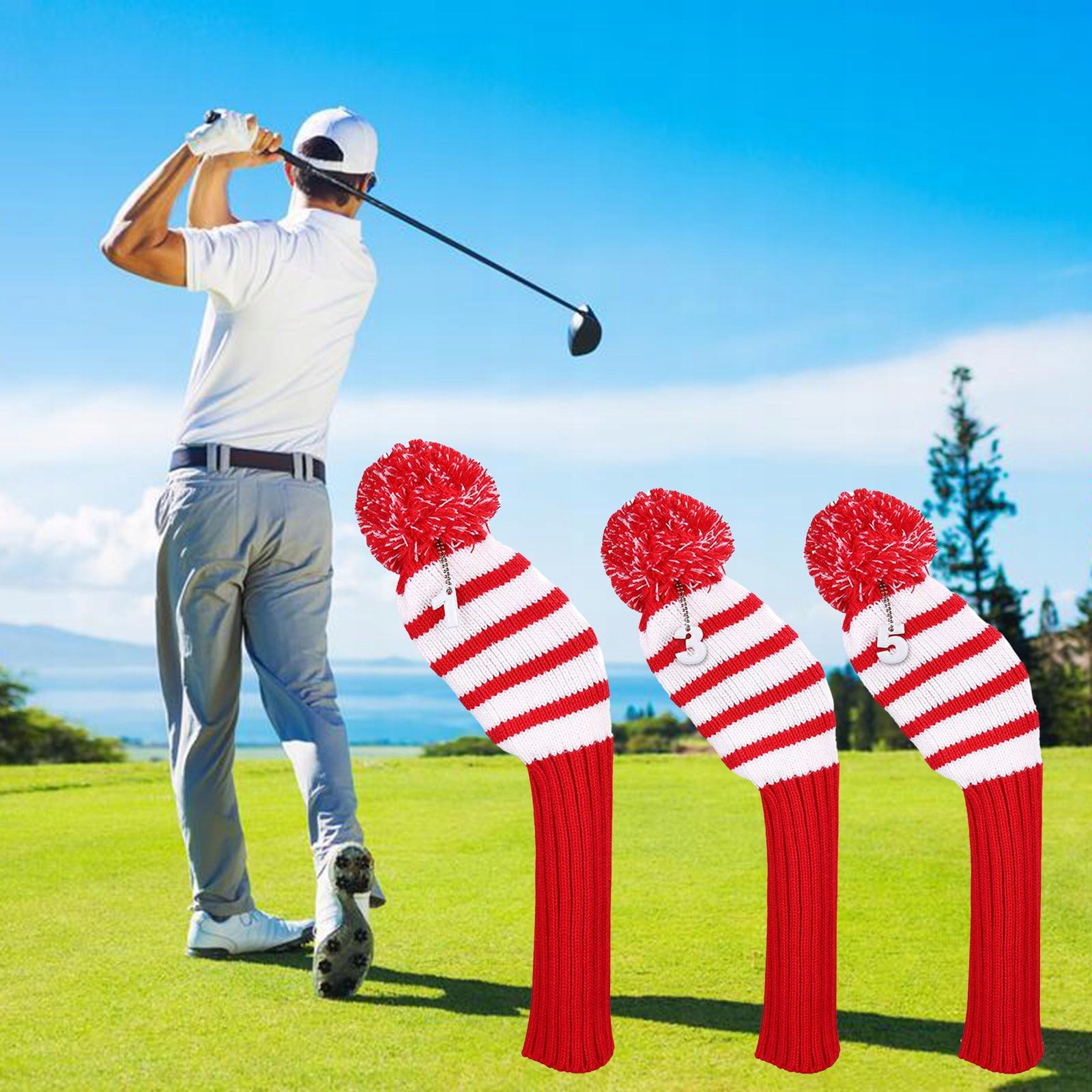 Набір з 3 в'язаних чохлів для головних уборів для гольфу з помпонами, дерев'яні чохли для головних уборів для гольфу, довгі