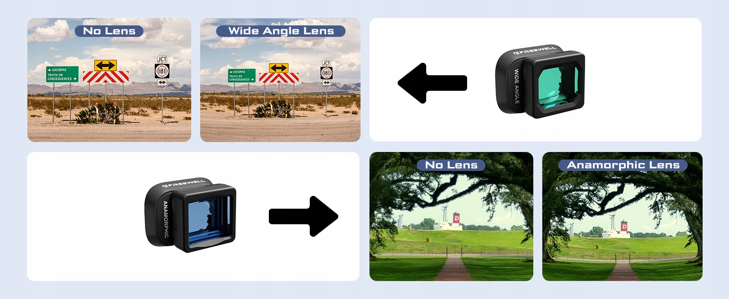 3,0-грамовий фільтр Cinema Blue Anamorphic із коефіцієнтом горизонтального стиснення зображення 1,19x перетворює кадри, зняті дроном, у кінематографічне мистецтво. Насолоджуйтесь класичним анаморфотним виглядом із вражаючими відблисками об’єктива та широкоформатним співвідношенням сторін.