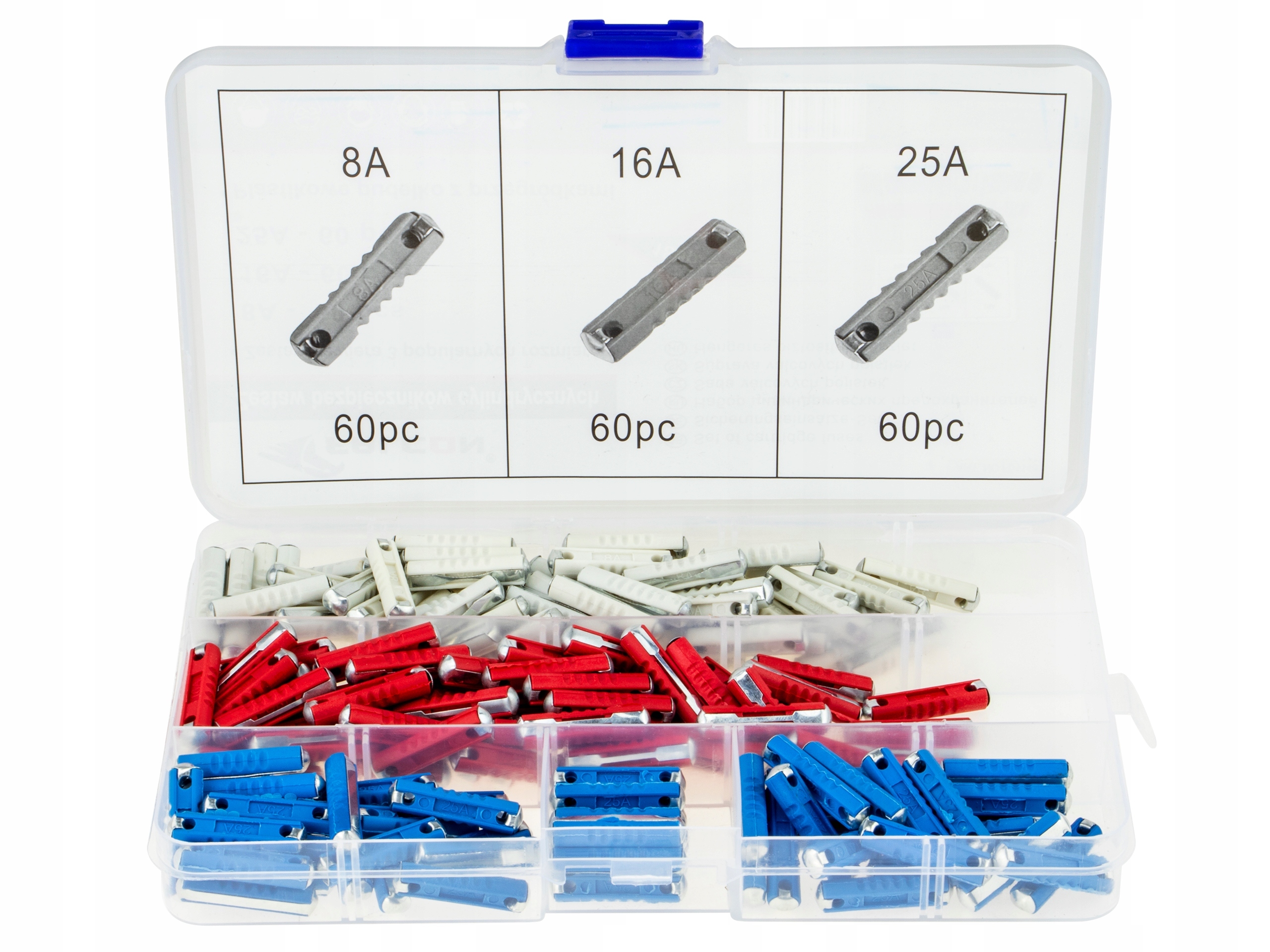 циліндричні запобіжники - у дуже практичному пластиковому сортувальнику.