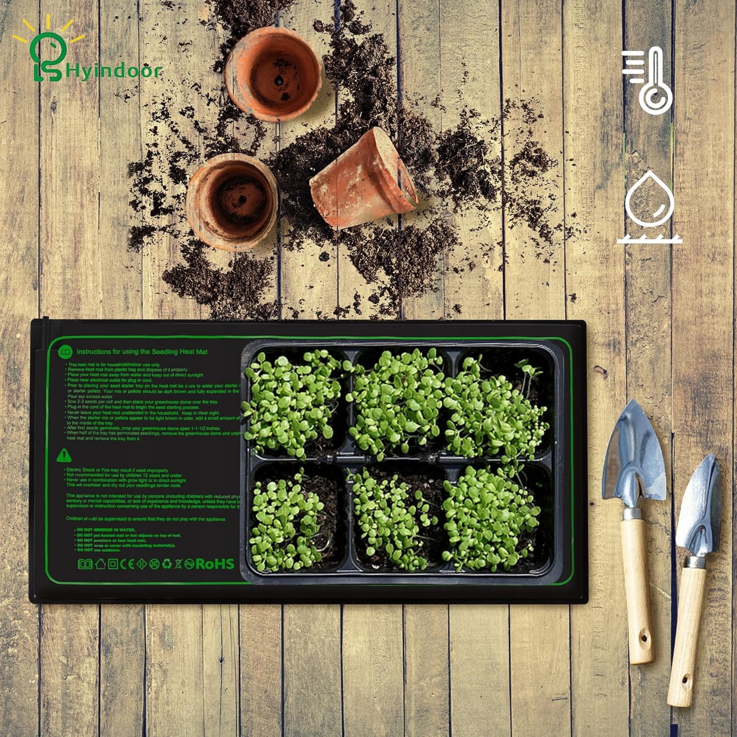 - Нагрівальний килимок може покращити проростання, нагріваючи область кореня на 5-10 ° C вище температури навколишнього середовища. Нагріваючи коріння, ви можете підтримувати постійну температуру, щоб вони могли вижити при низьких температурах та навколишньому середовищі. Нижнє нагрівання - один з найважливіших та найефективніших способів поліпшення проростання та вкорінення. F) та 6 кроків таймера для налаштування (4/8/11/16/20/24/без таймера). Матовий нагрівання з термостатом зручніше використовувати подушку нагріву та краще захистити проростання та ріст рослини. Нагрівальна подушка виготовлена з водонепроникних, стійких до корозії та міцних матеріалів IP67. Новий, сильніший нагрівальний дріт та більш товста багатоквартирна конструкція забезпечують більш рівне нагрівання та довговічність, щоб протистояти важким умовам парникових, безпечних у використанні та нелегким у пошкодженні. Ідеальний вибір для нагрівання теплиці і, можливо, не краще прорости розсади, квітів, фруктів та овочів, а й до тераріуму, рептилії та пиво, чай, йогурт або бродіння Compucha. Сила: 30 Вт; Вхід: AC 220 - 240 V 50/60 Гц. Нагрівальний килимок підтримує ріст рослинних коренів, покращує рівень успішності саджанців та розсади та підтримує проростання насіння. Використання термостата може тримати рослини при потрібній температурі, що робить процес посадки простим та успішним.