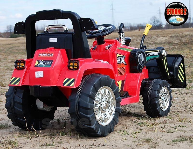 Супер -трактор - екскаватор з найсильнішою та найкращою версією міцного акумулятора з дуже міцною конструкцією, великим 12 В -акумулятором, двома двигунами 90 Вт, 3 передачами, піднятими ложкою та зручним сидінням для нашого водія!