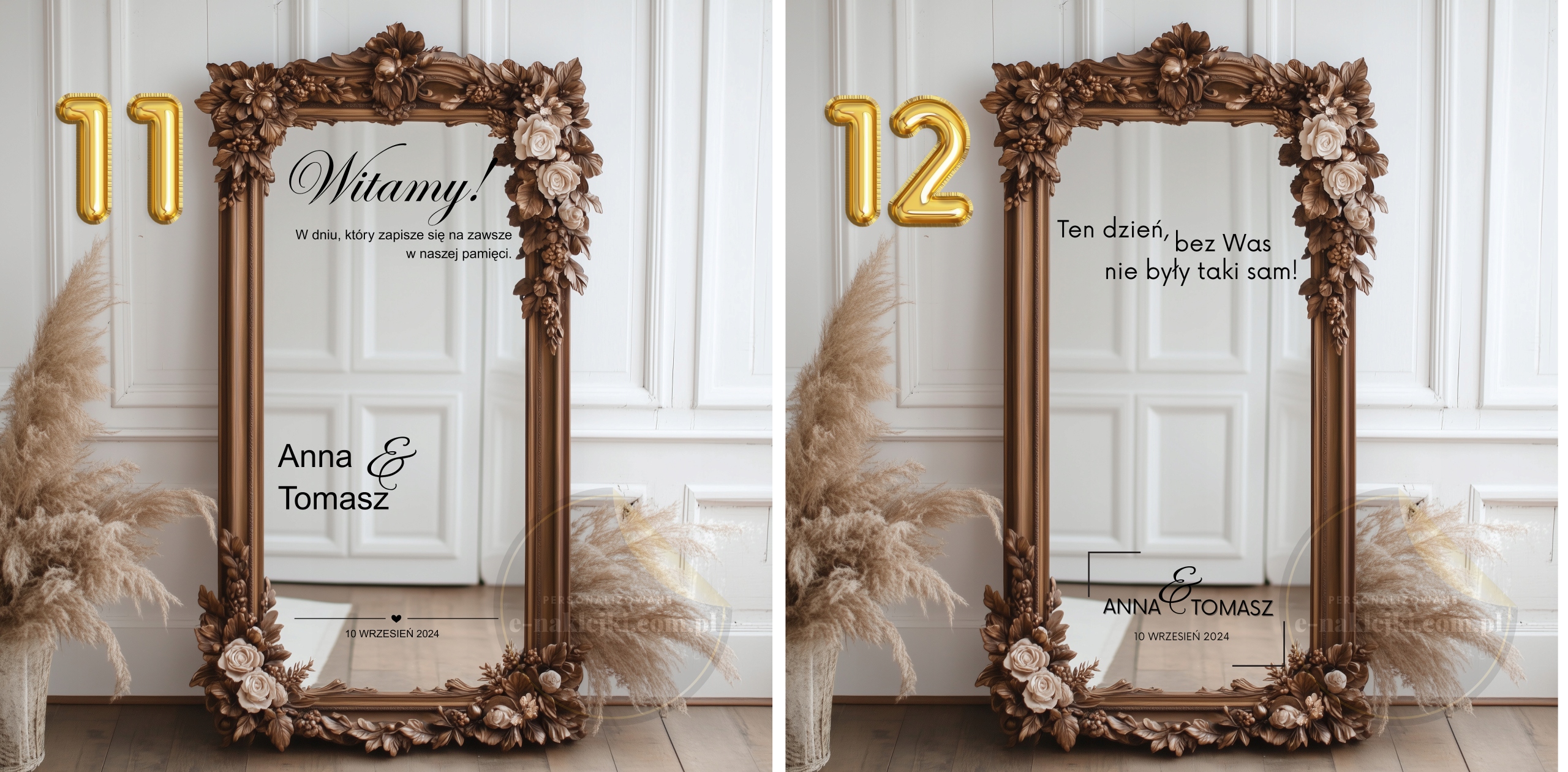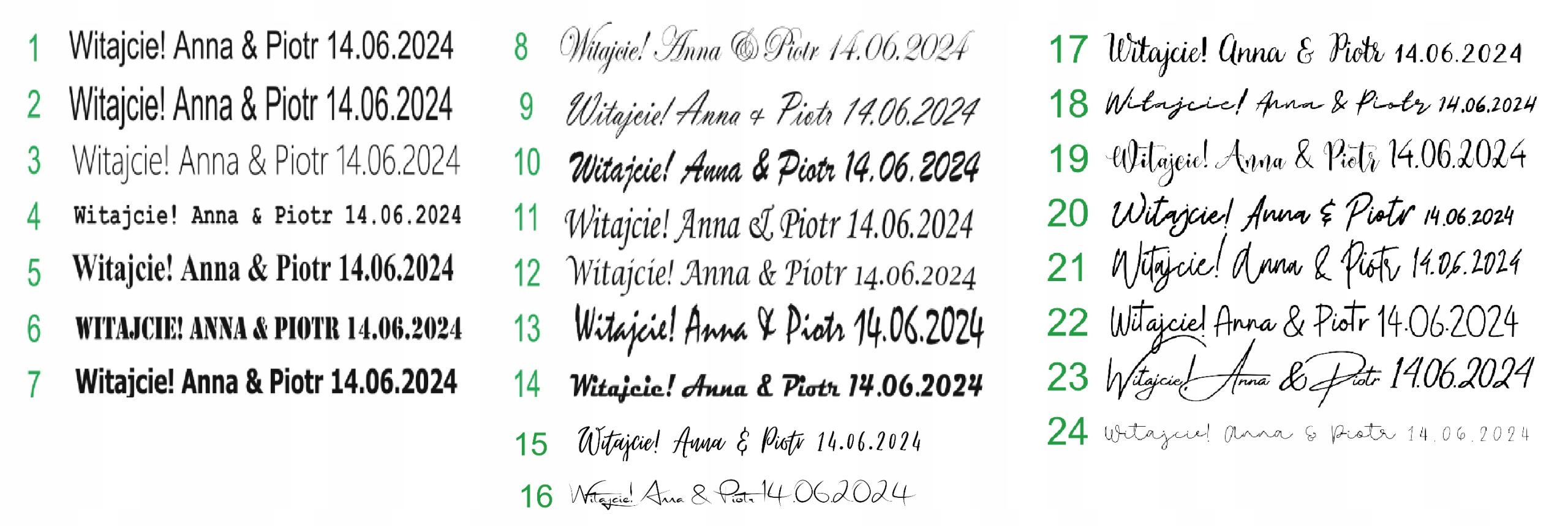 - Виберіть: шрифт, кольорова наклейка, дайте нам імена нареченої та нареченої, дату церемонії та цитату чи текст, який ви хочете надіти на наклейку.