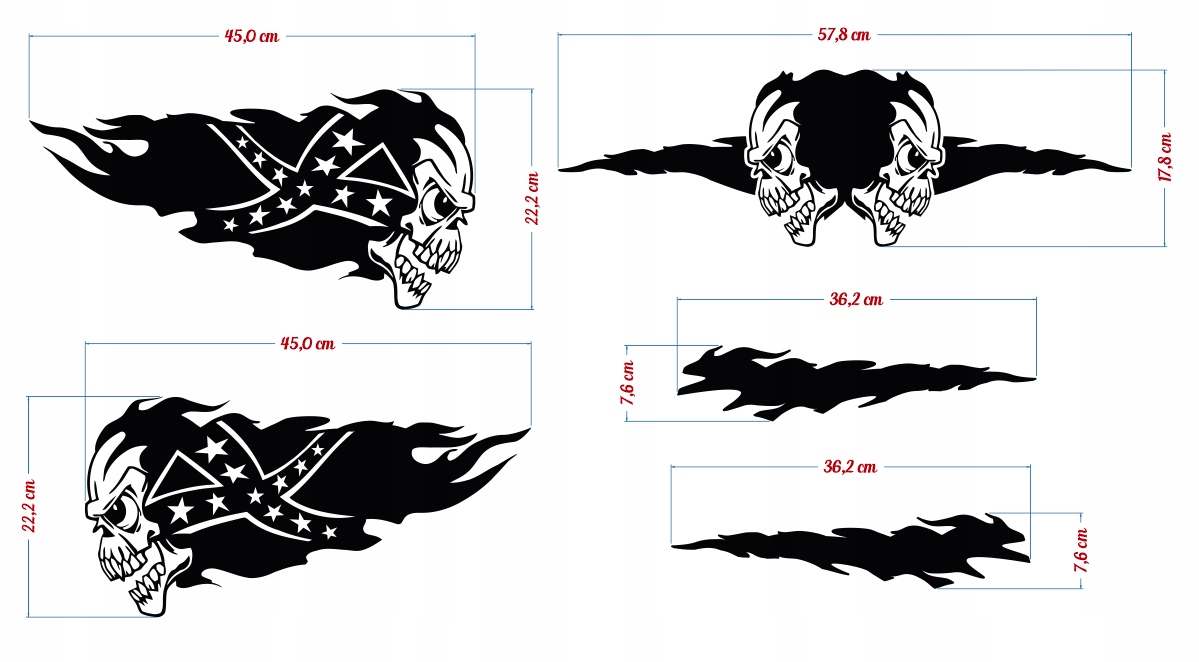 45 см на 22,2 см - 2 шт. . черепи з вогнем для боків автомобіля.