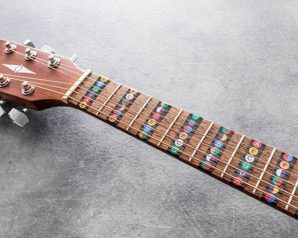 ✅ Стікери з назвами звуків стануть у пригоді та допоможуть кожному учню гри на акустичній гітарі.