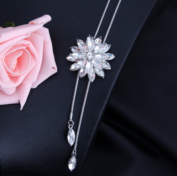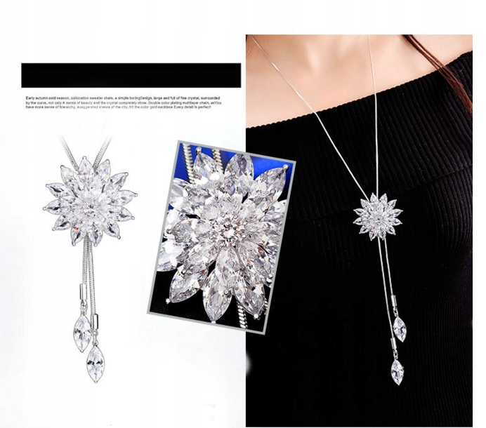 Намисто, довгий срібний ланцюжок, кришталь КВІТА