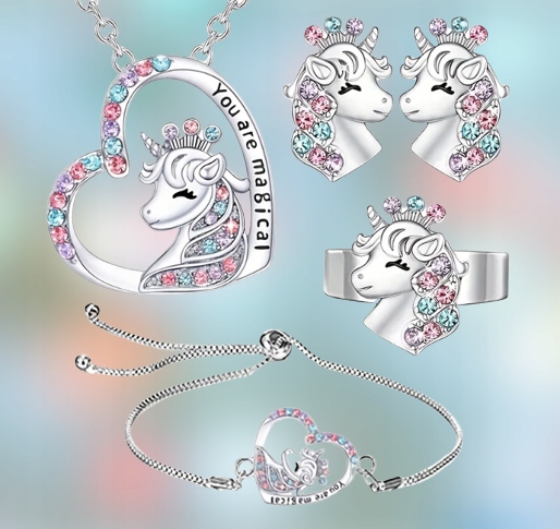 Намисто, сережки, браслети, набір кілець, набір єдинорогів, набір коней