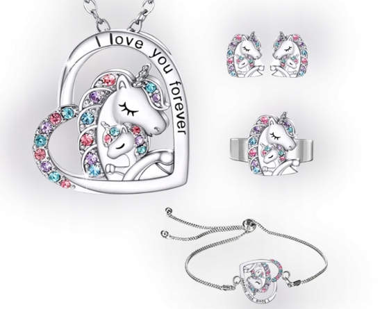 Набір із намиста, сережок, браслета, кільця, єдинорога. Набір із 4 штук